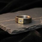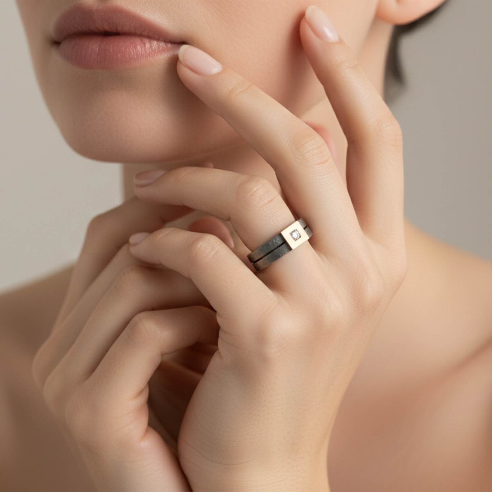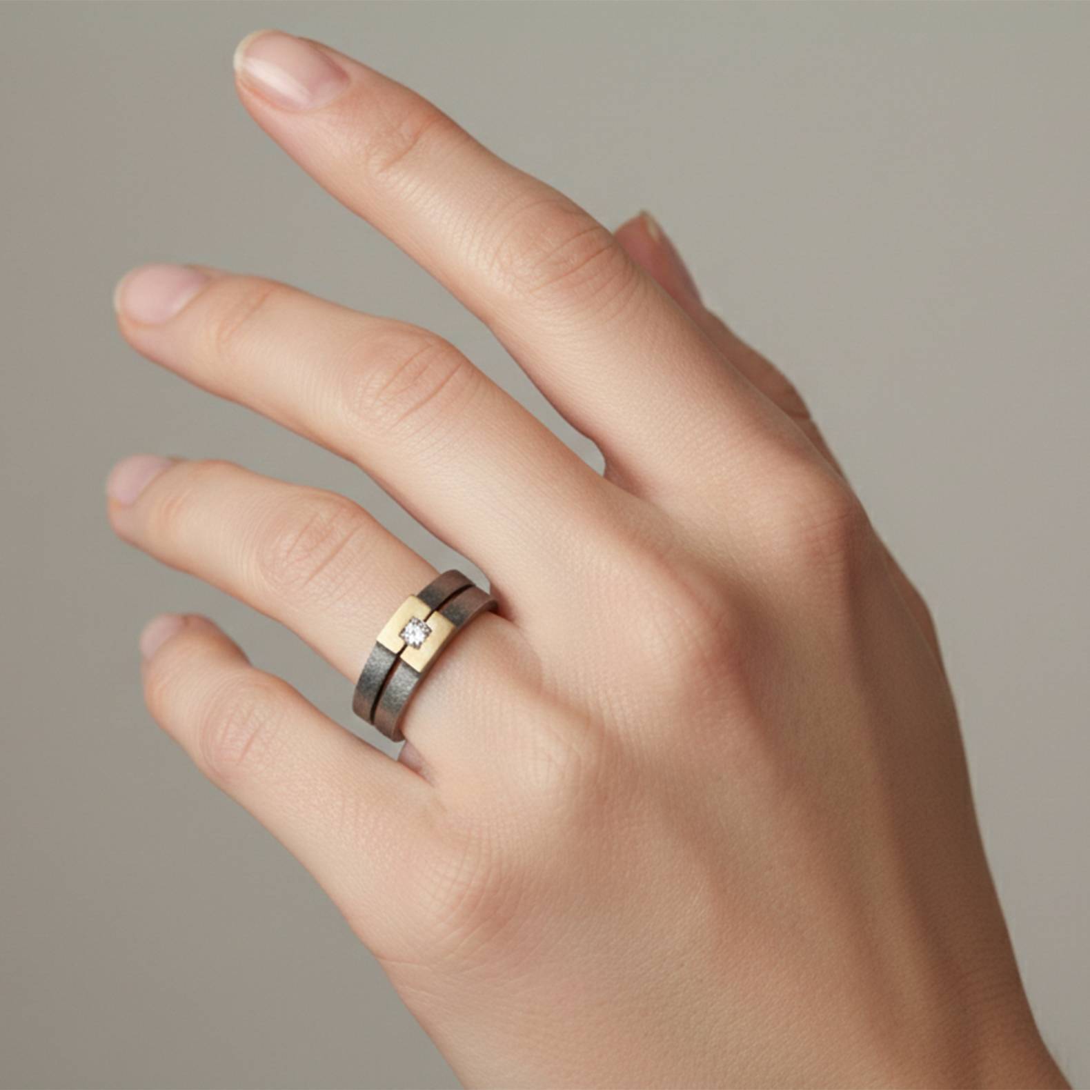 Anillo de plata, oro amarillo de 18k y un diamante natural talla brillante.