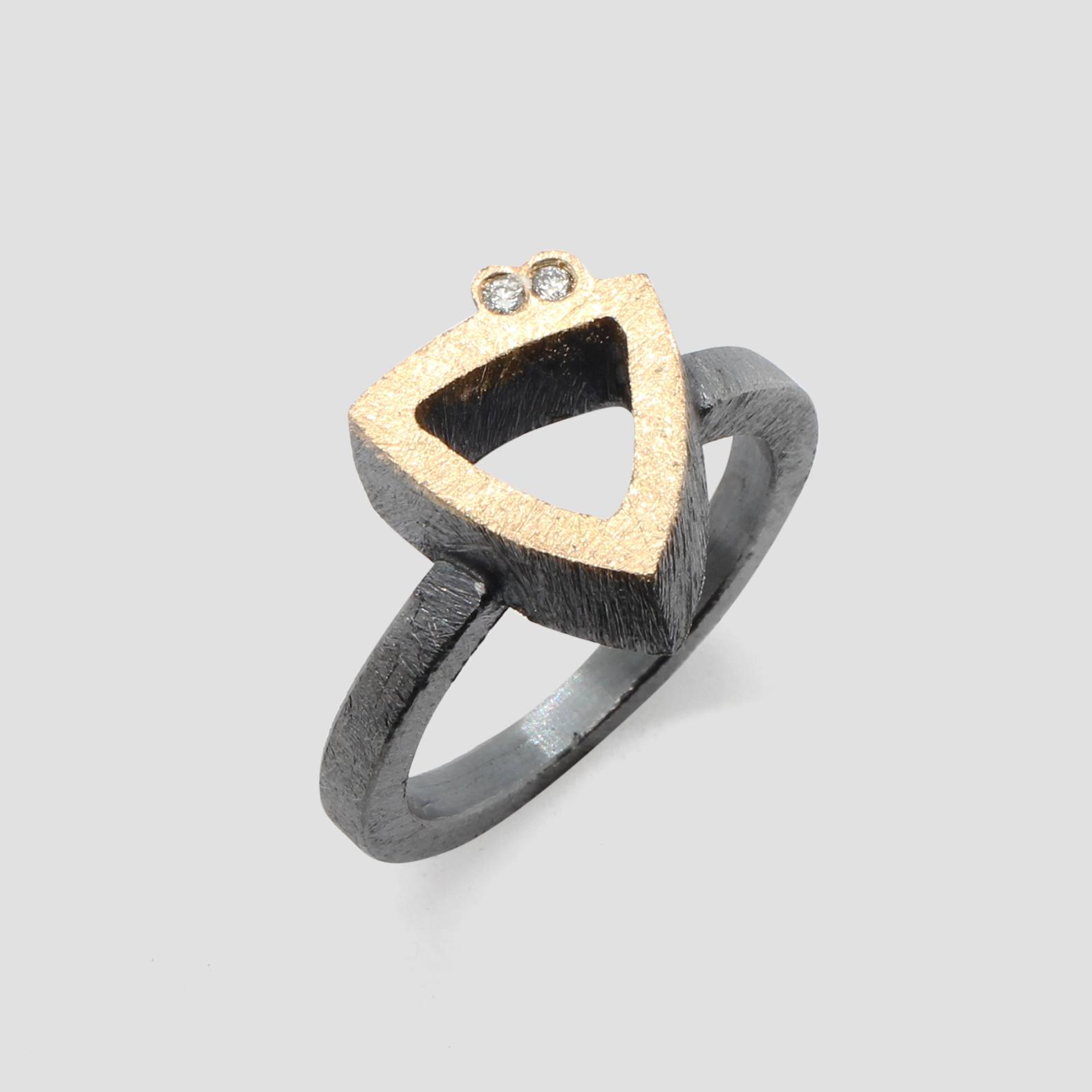 Anillo de plata, oro amarillo de 18k y dos diamantes naturales talla brillante.