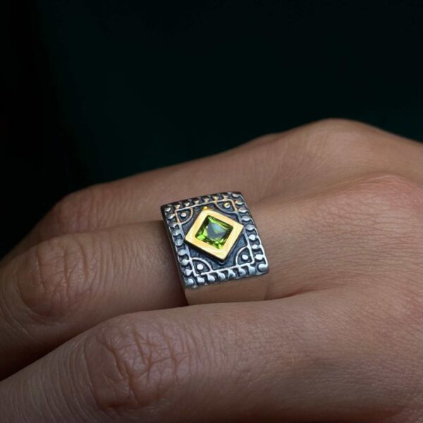 Anillo de plata, oro amarillo de 18k y un peridoto.