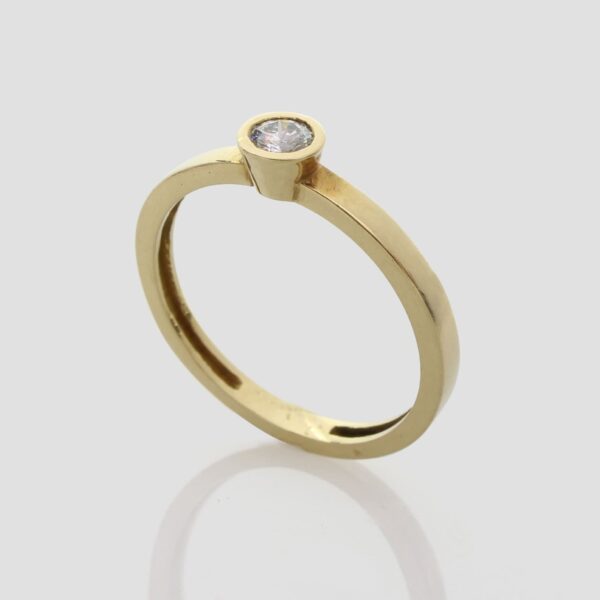 Anillo de compromiso de oro amarillo de 18k y un diamante natural talla brillante.