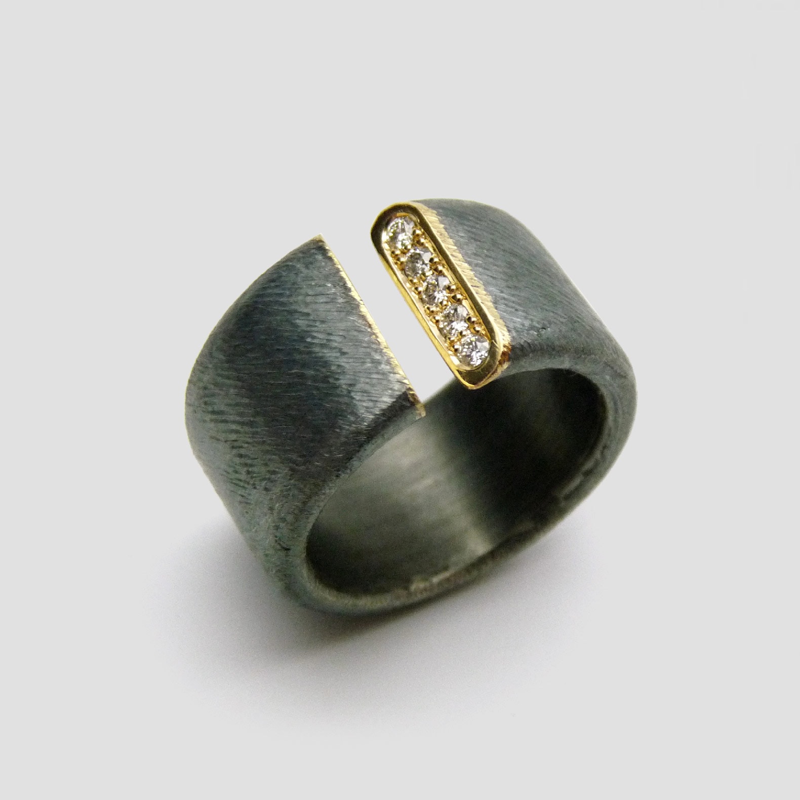 Anillo de plata, oro amarillo de 18k y cinco diamantes naturales talla brillante.