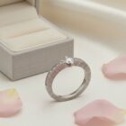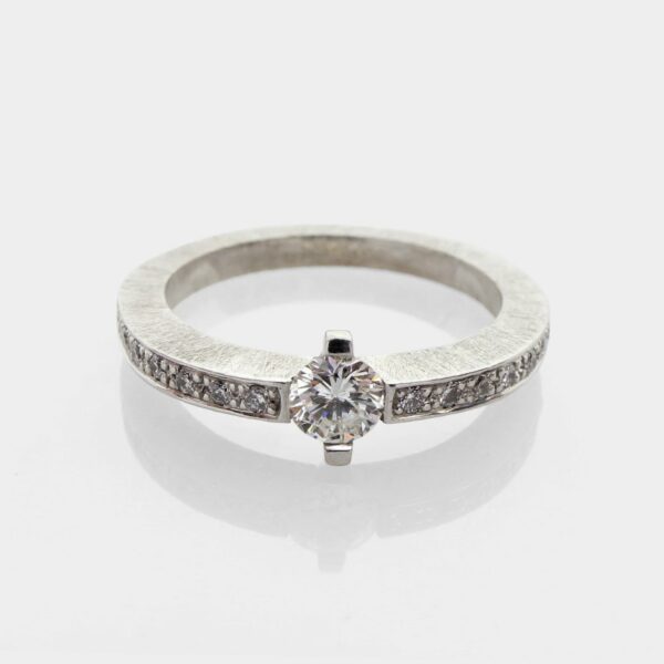 Anillo de compromiso de oro blanco de 18k y diamantes naturales talla brillante.