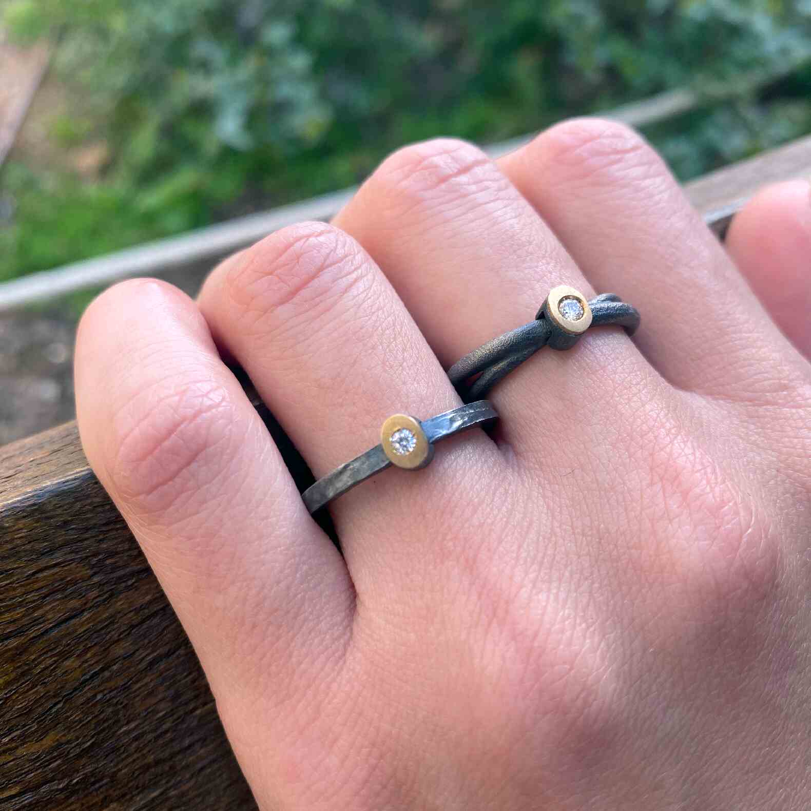 Anillo de plata, oro amarillo de 18k y un diamante natural talla brillante.