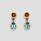 Pendientes de plata, oro amarillo de 18k, dos citrinos y dos topacios azules.