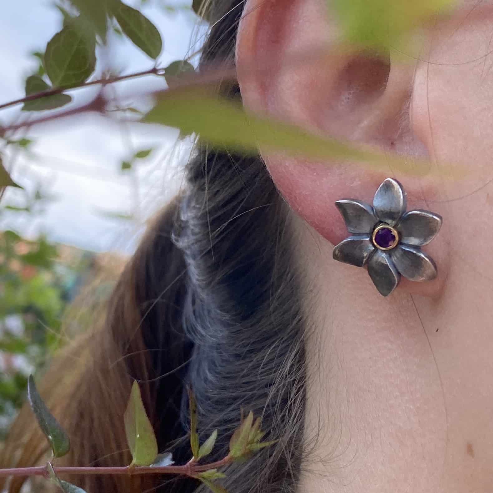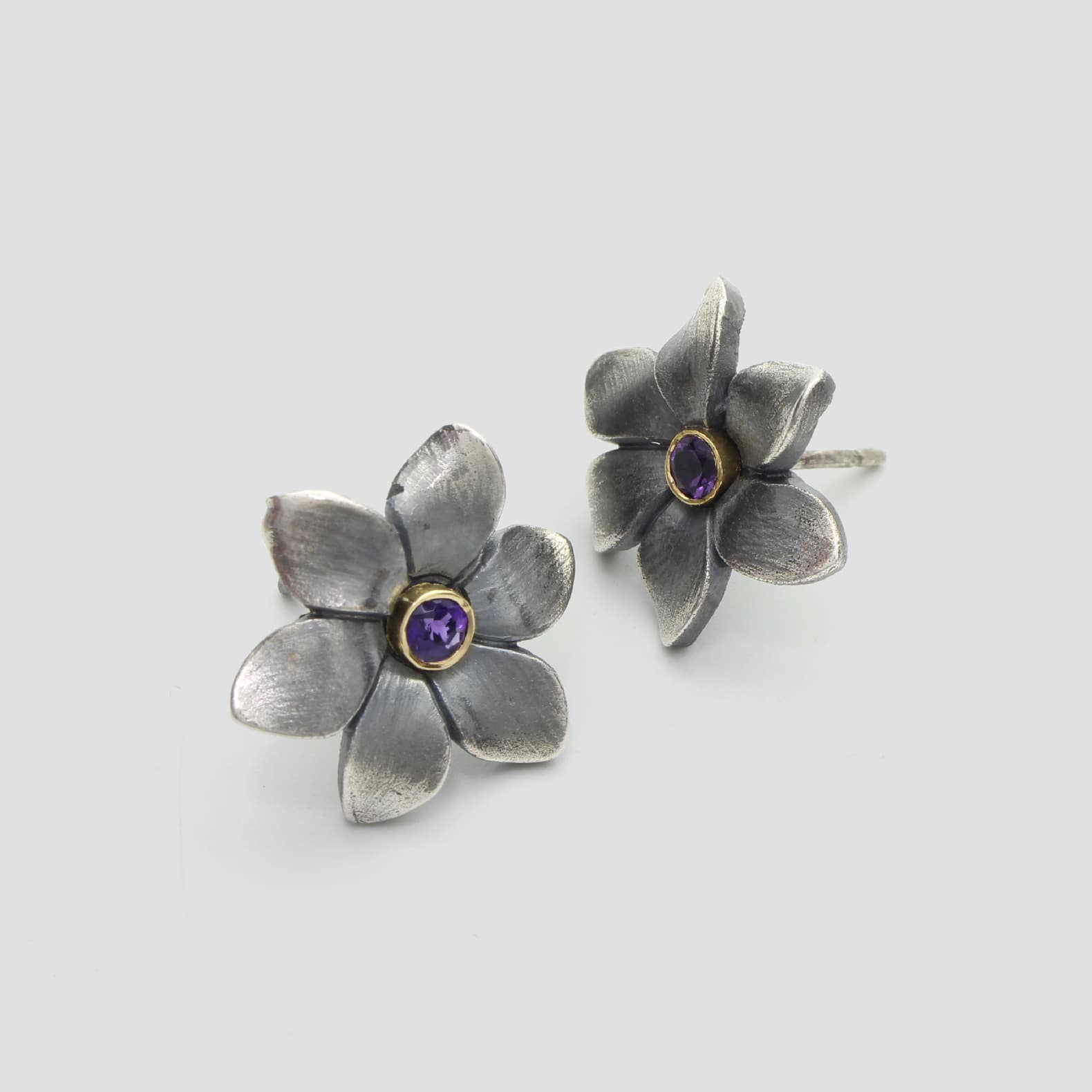 Pendientes de plata, oro amarillo de 18k y dos amatistas.