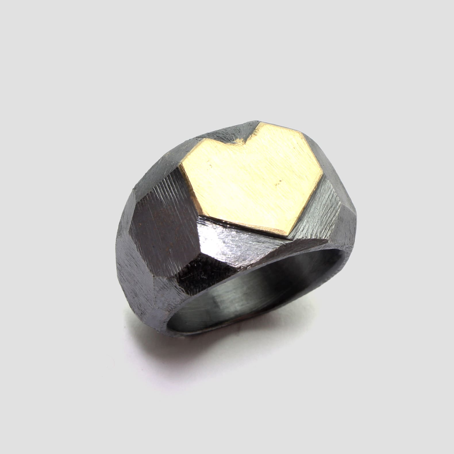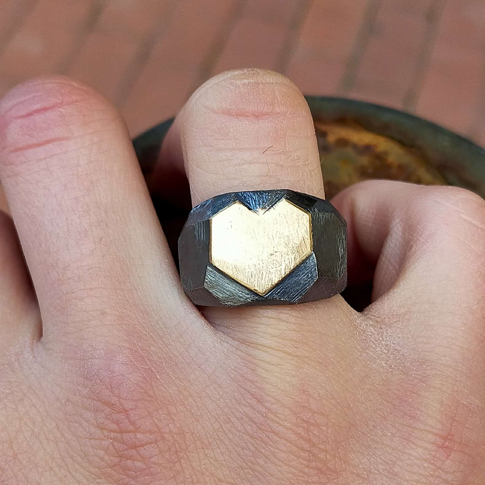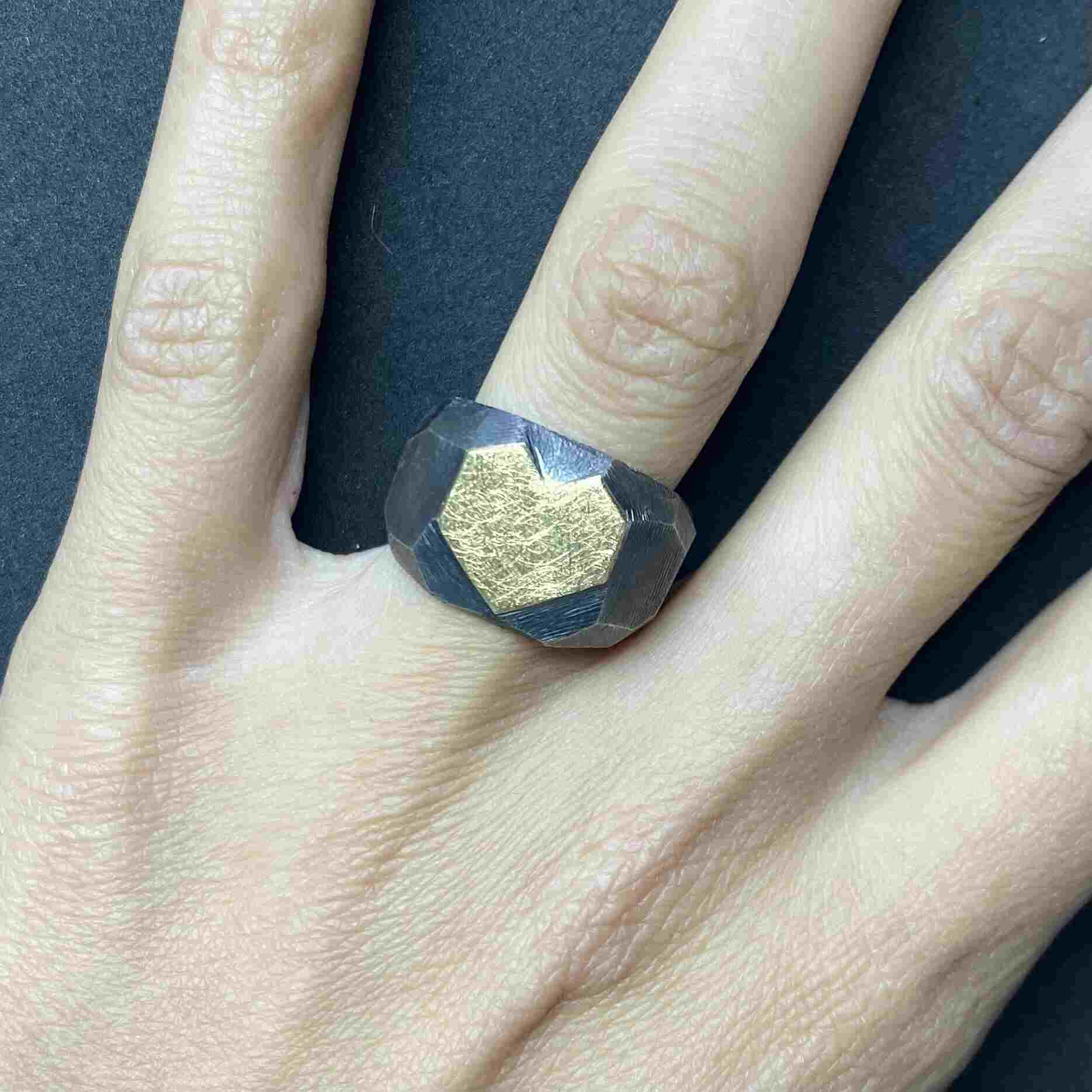 Anillo tipo sello de plata y oro amarillo de 18k.