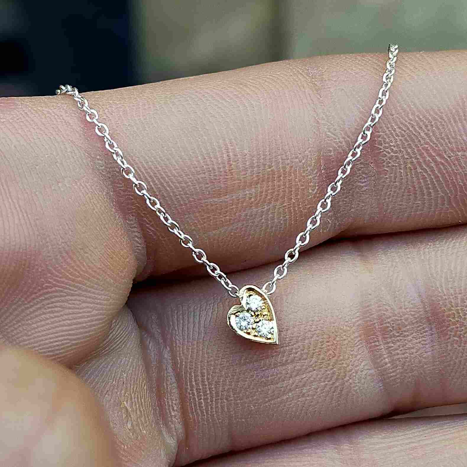 Collar de plata, oro amarillo de 18k y tres diamantes naturales talla brillante.