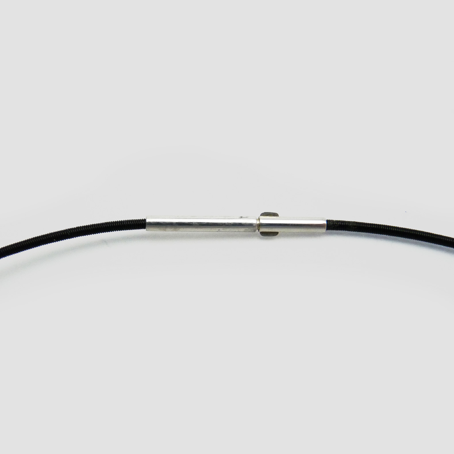 Cable de acero negro con cierre de plata.