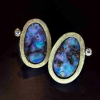 Dos magníficos ópalos boulder son los protagonistas de estos pendientes, hechos en plata, oro de 18k y dos diamantes naturales talla brillante, la singularidad de las piezas únicas.