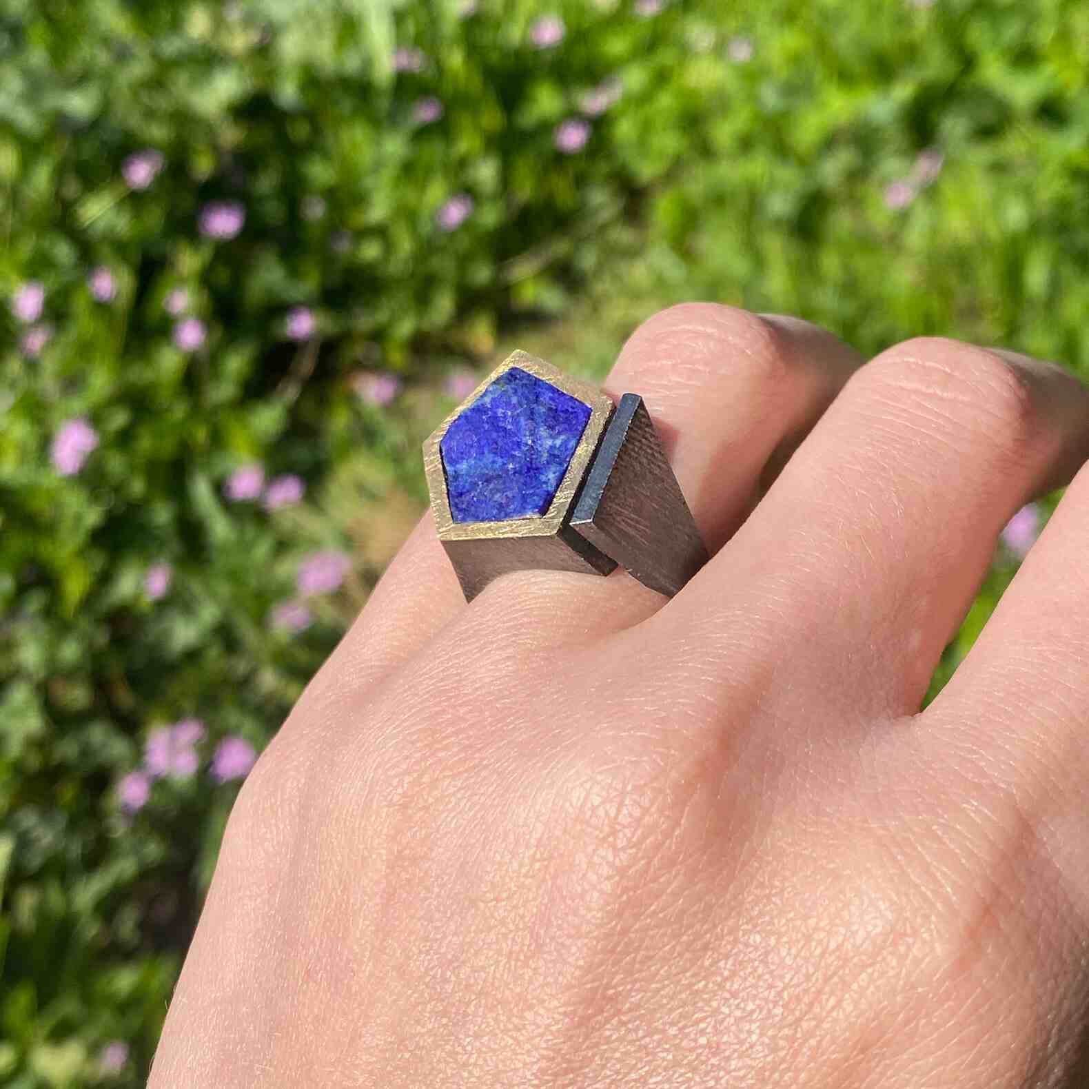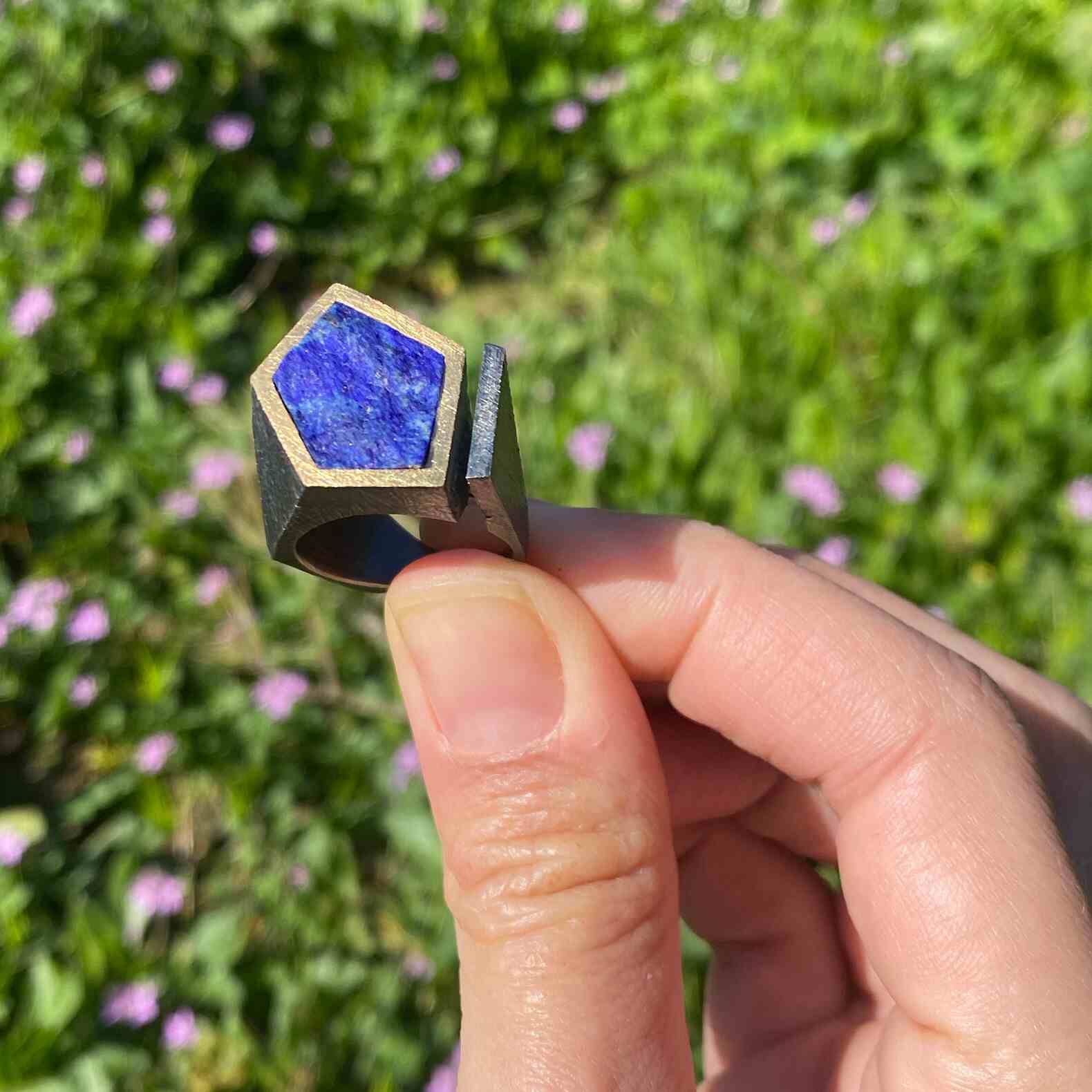 Anell de plata, or groc de 18q i un preciós lapislàtzuli.