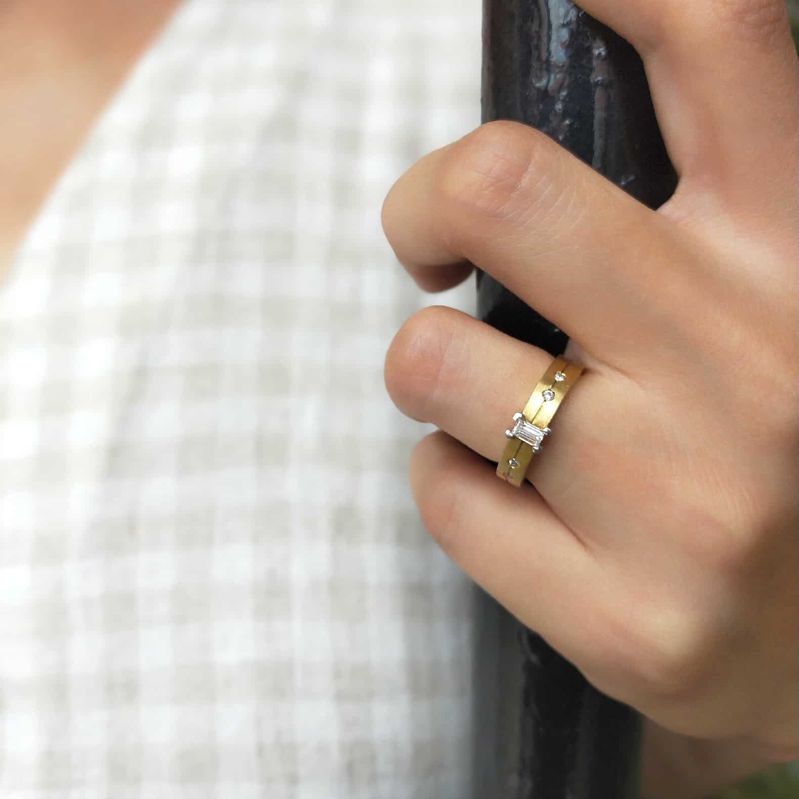 - 1 diamant talla baguette – Pes total: 0,20 quirats
