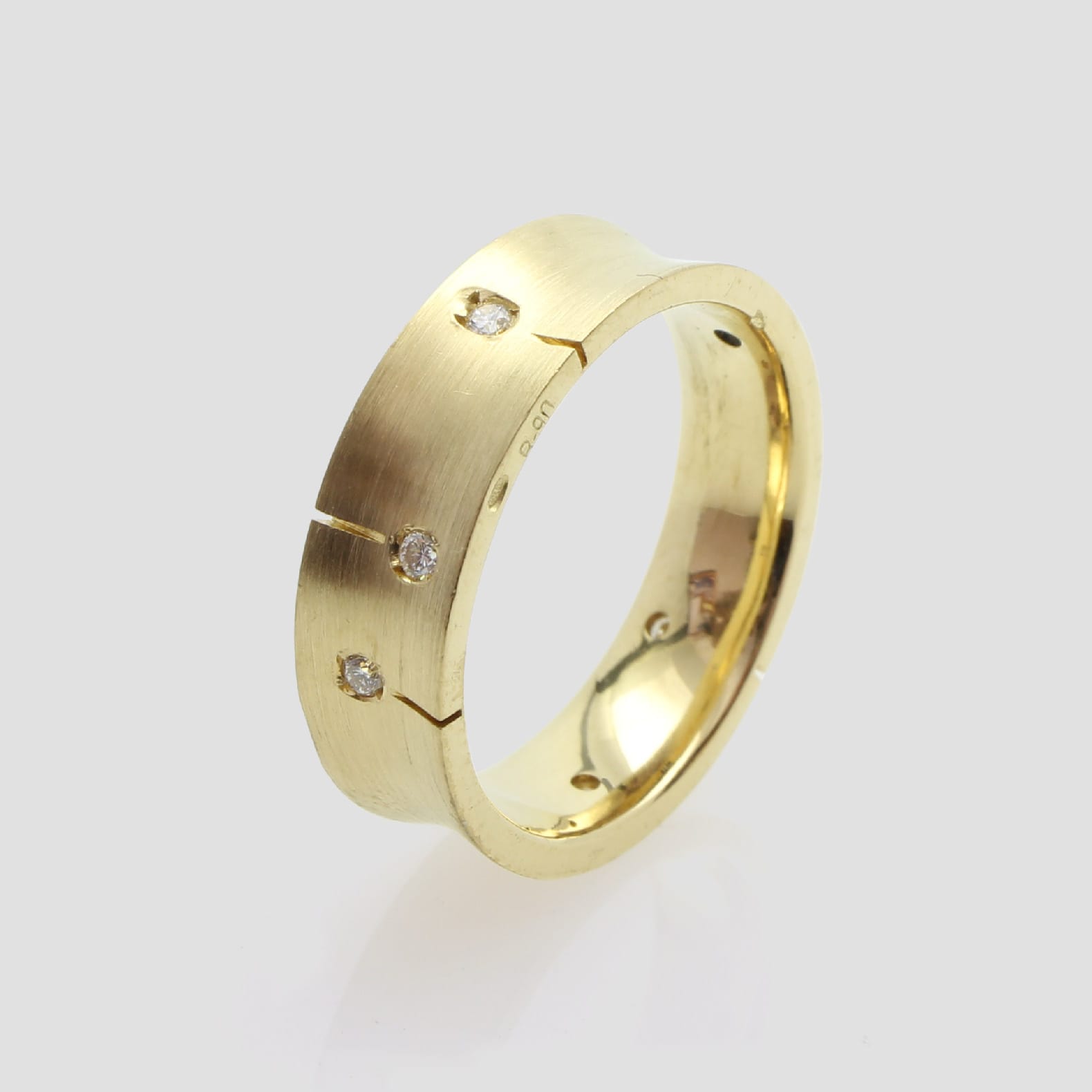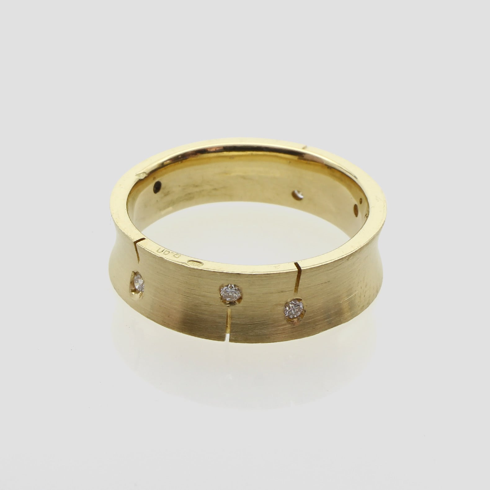 Aliança de casament d’or groc de 18q i sis diamants naturals talla brillant.