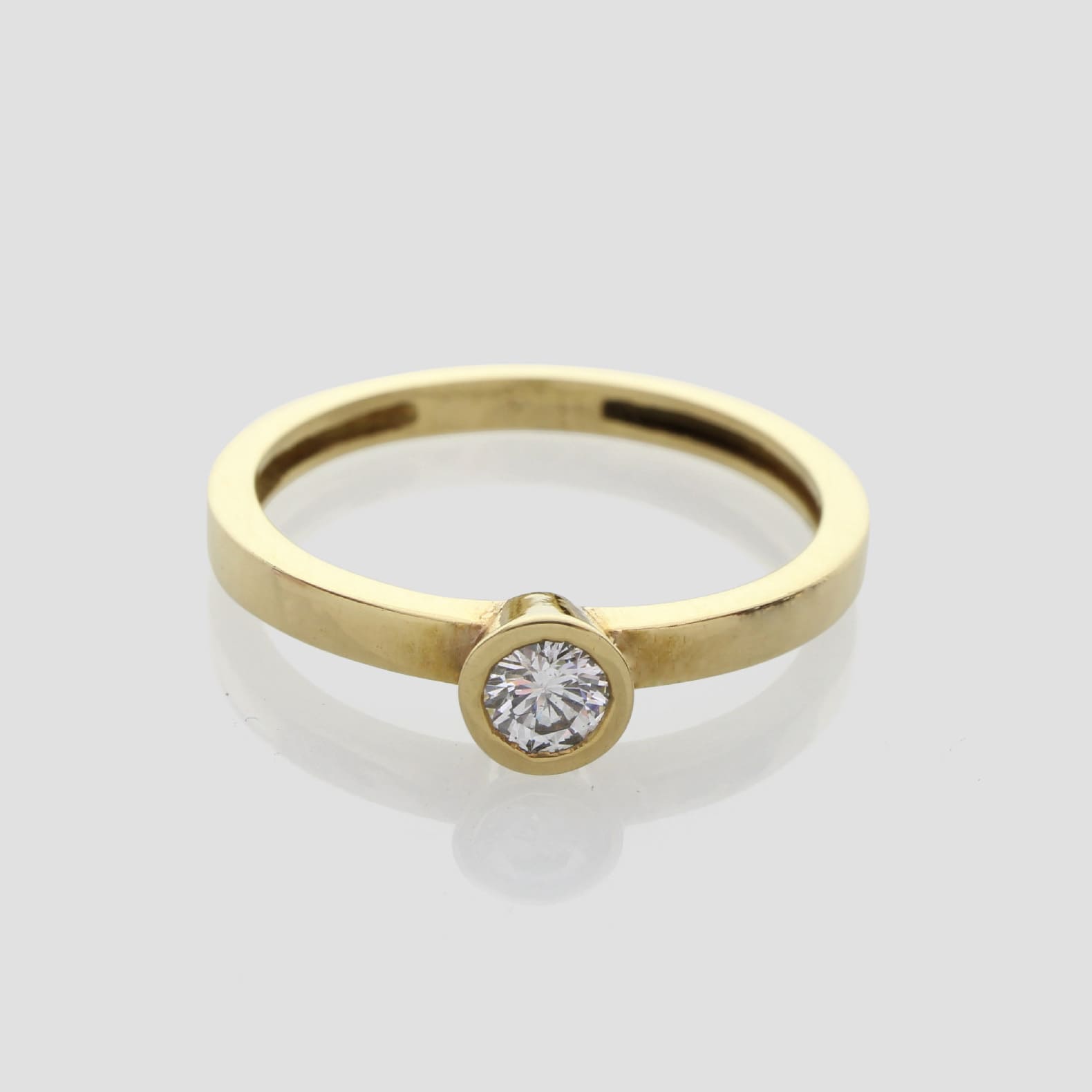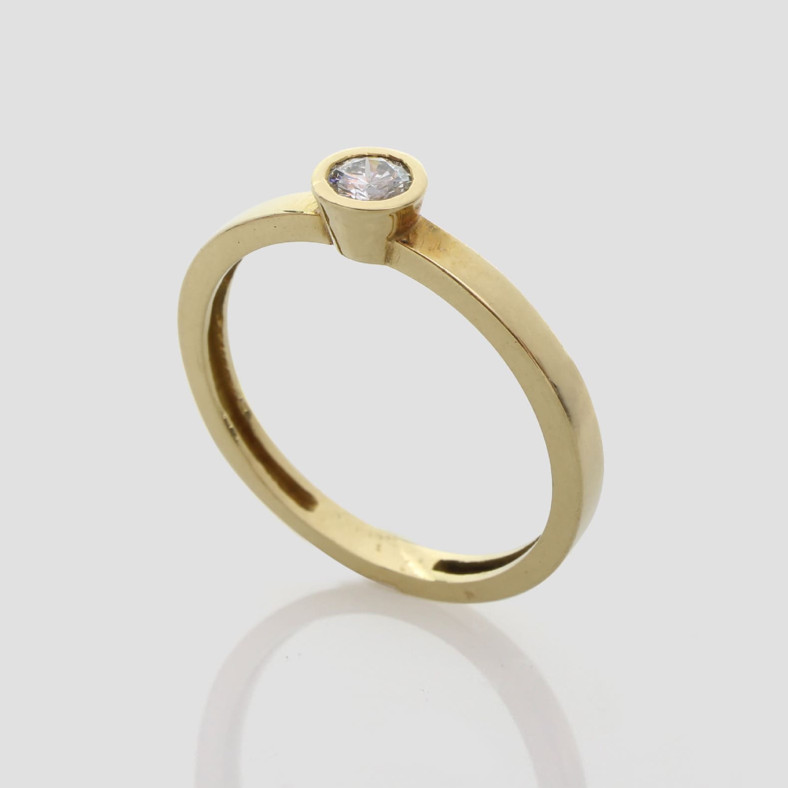 Anell de compromís d’or groc de 18q i un diamant natural talla brillant.