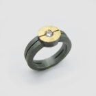 Anell de plata, or groc de 18q i un diamant natural talla brillant.
