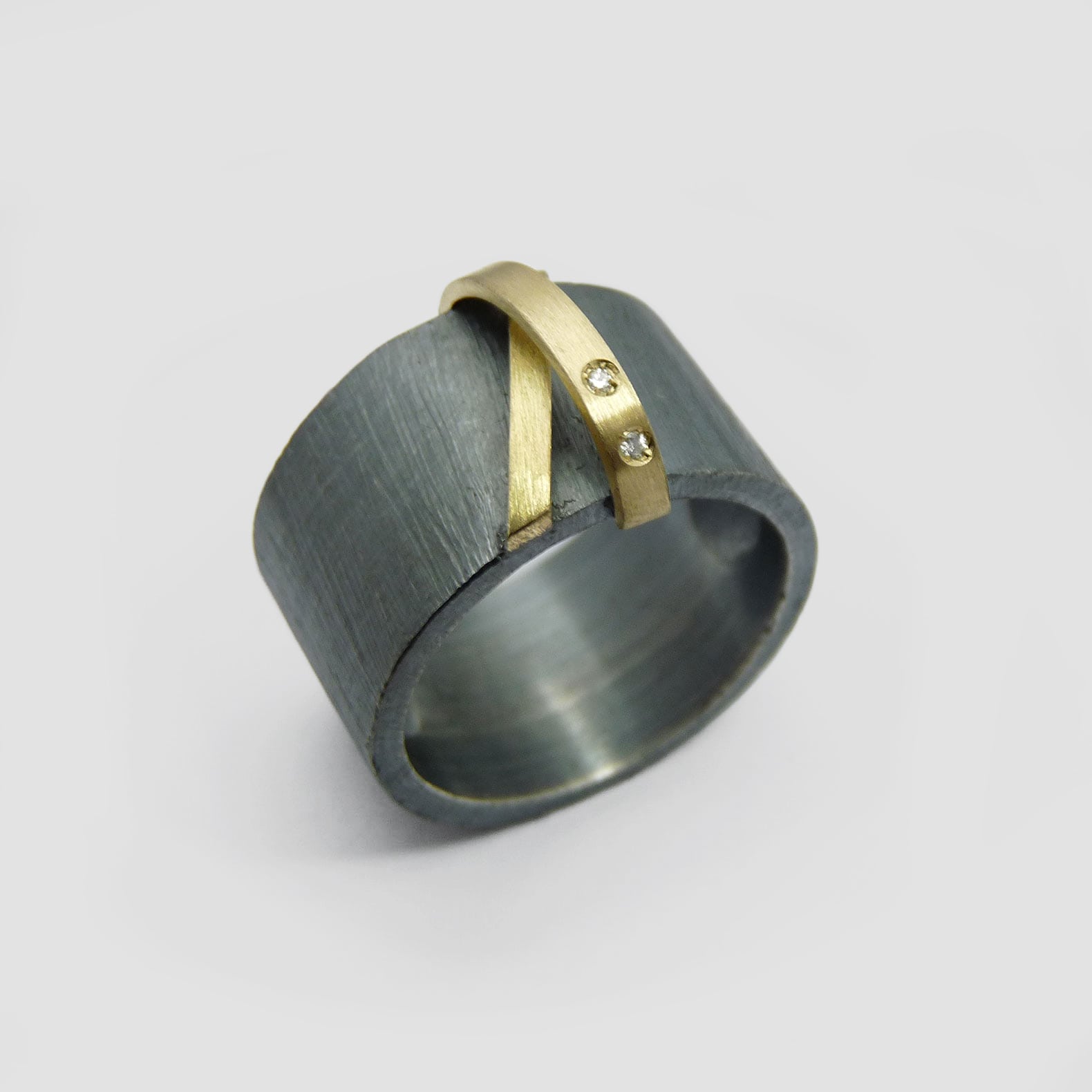 Anell de plata, or groc de 18q i dos diamants naturals talla brillant.