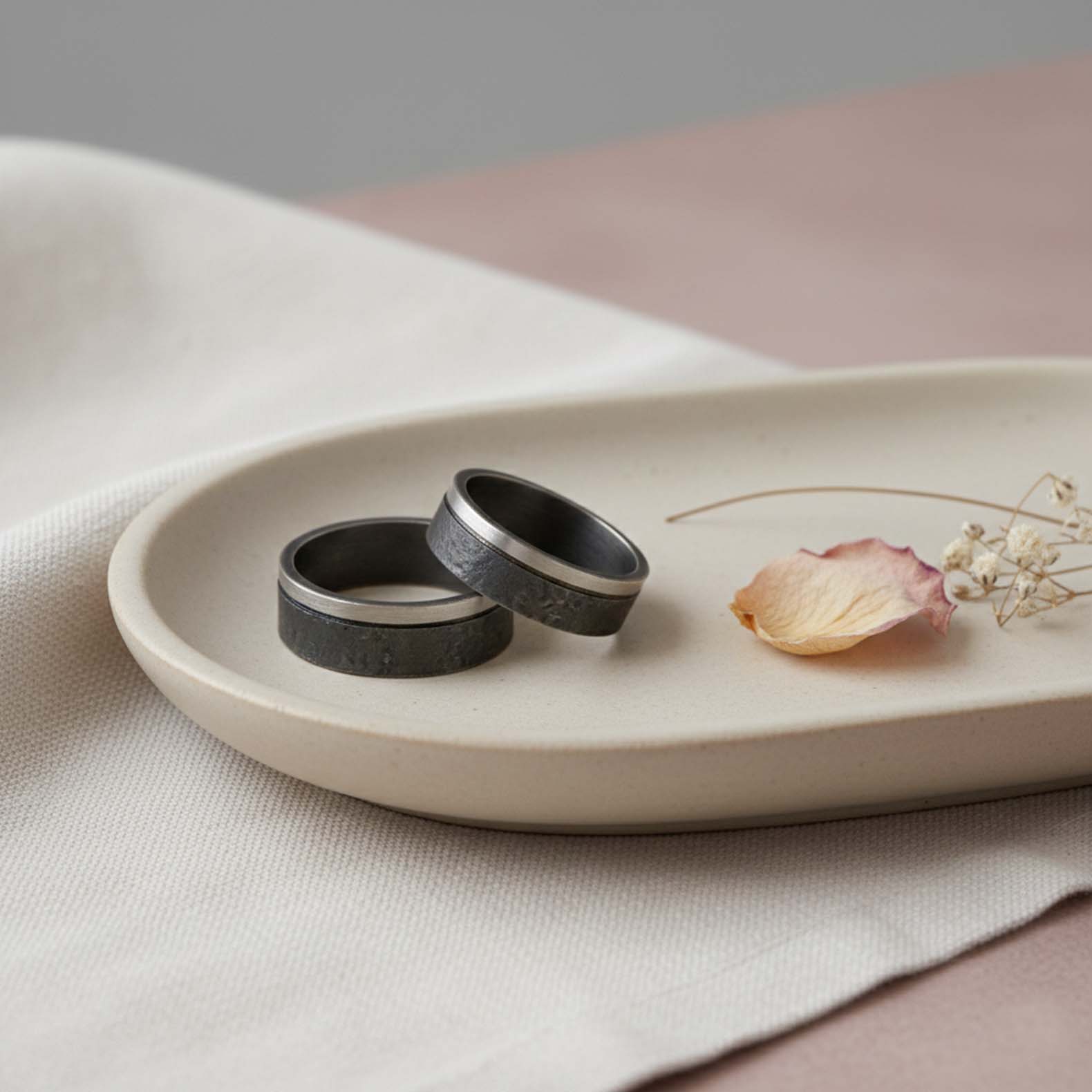 Aliança de casament de plata i or blanc de 18q.