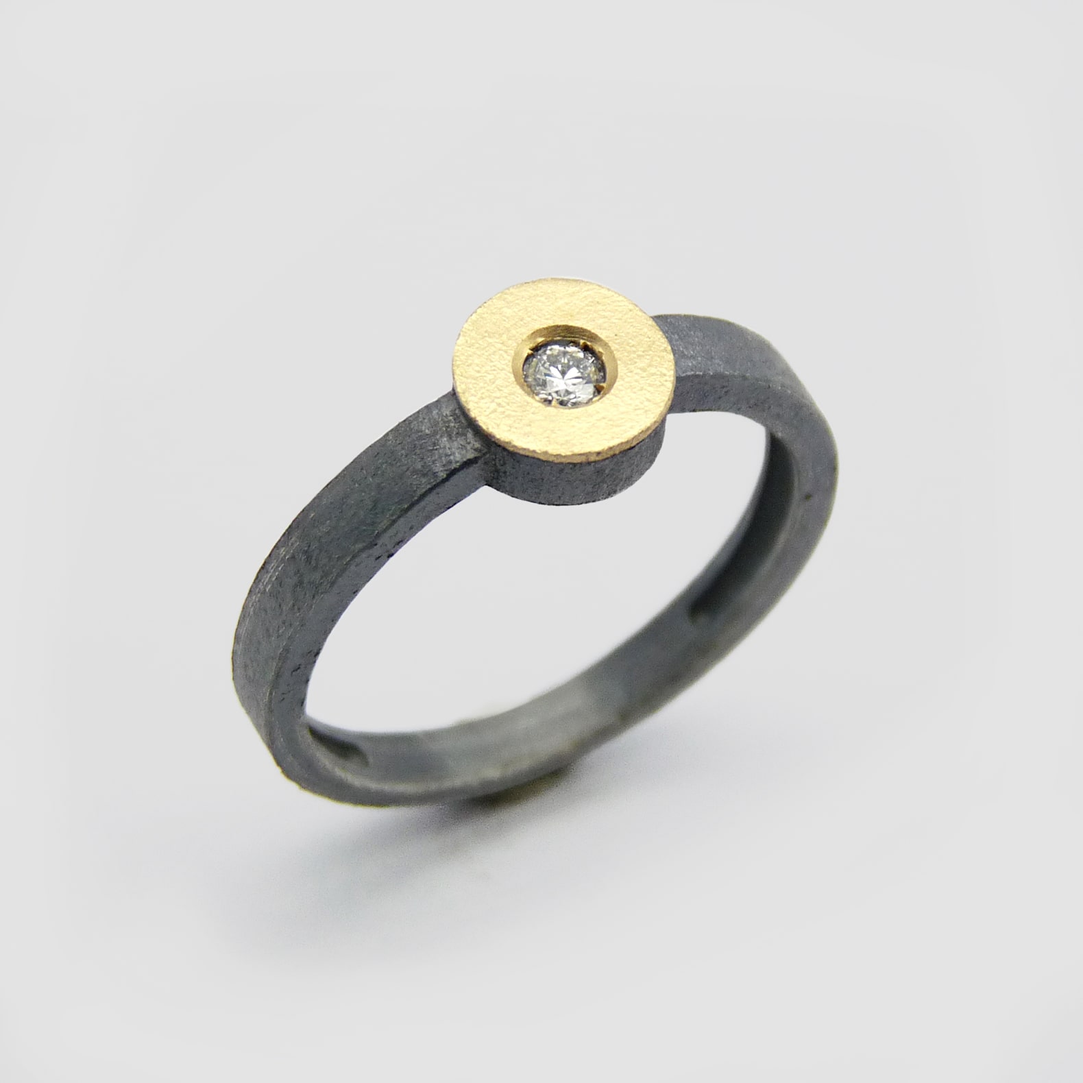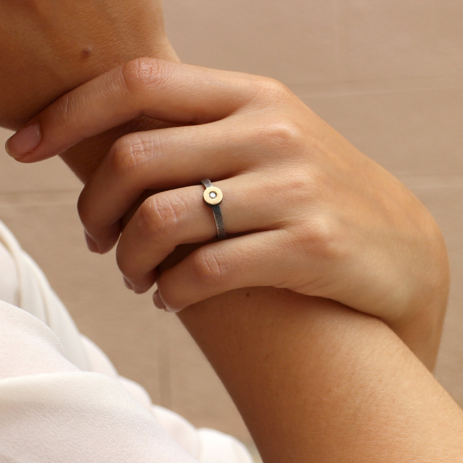 Anell de plata, or groc de 18q i un diamant natural talla brillant.