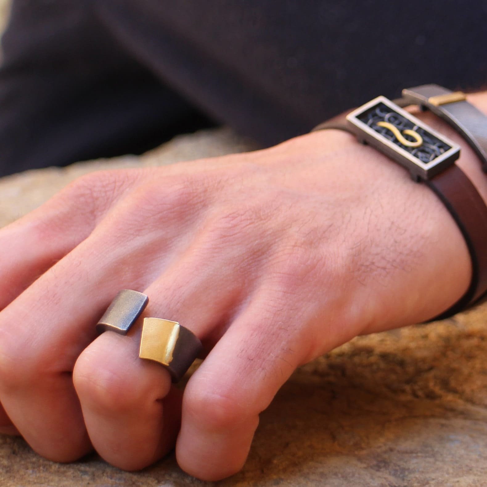 Anell per a home de plata i or groc de 18q.