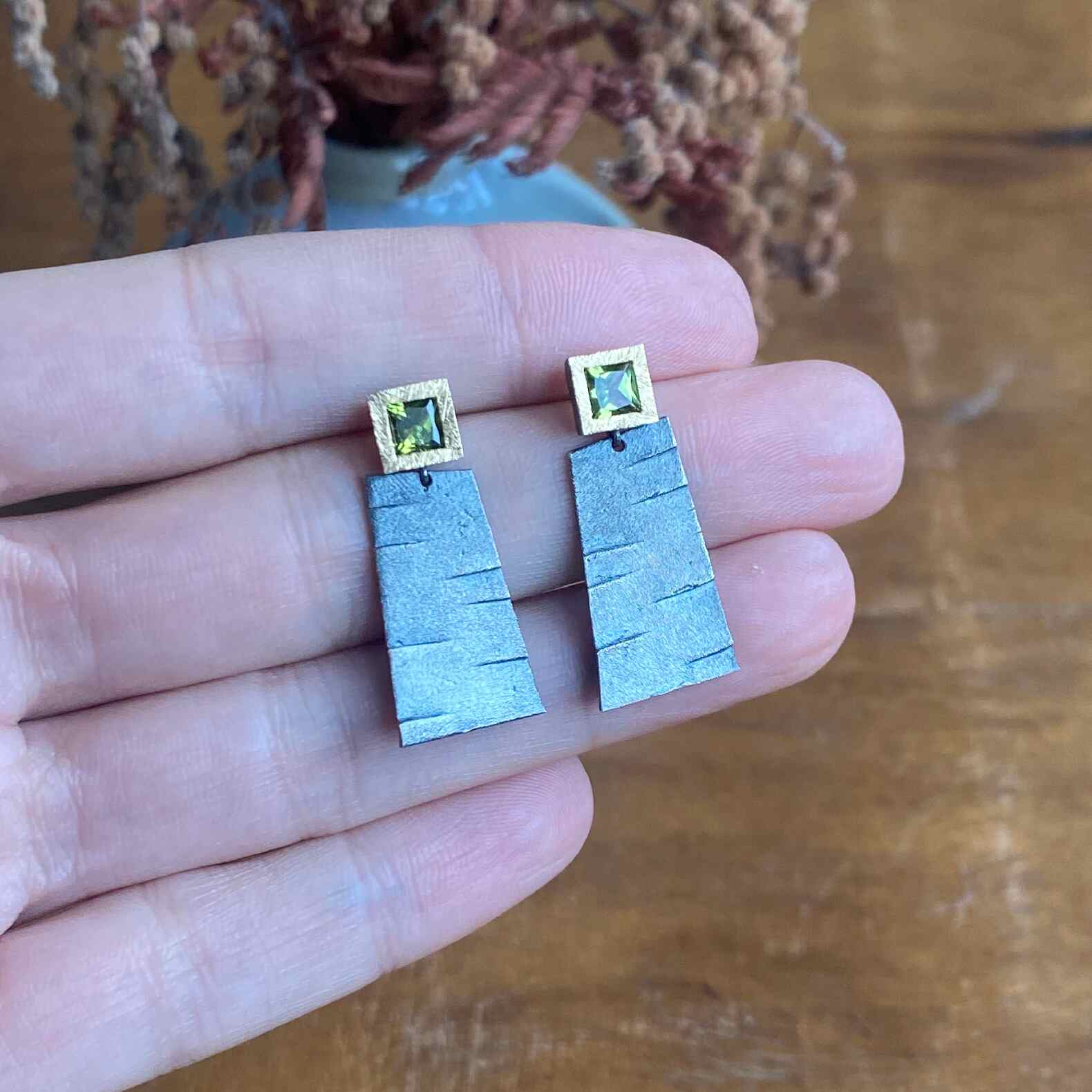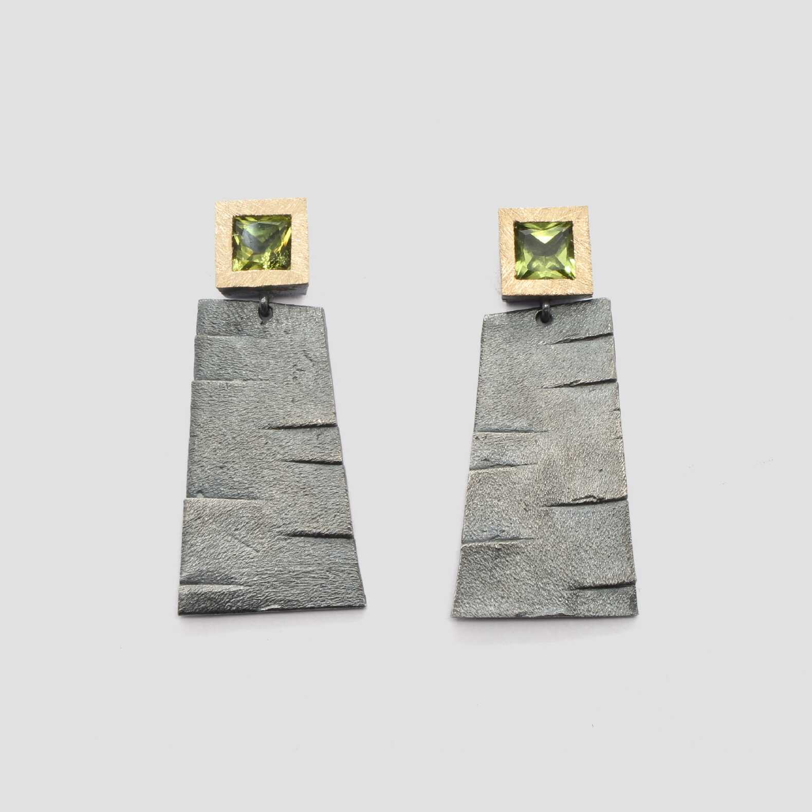 Arracades de plata, or groc de 18q i dos peridots.