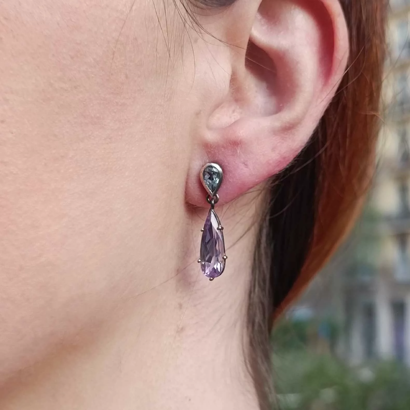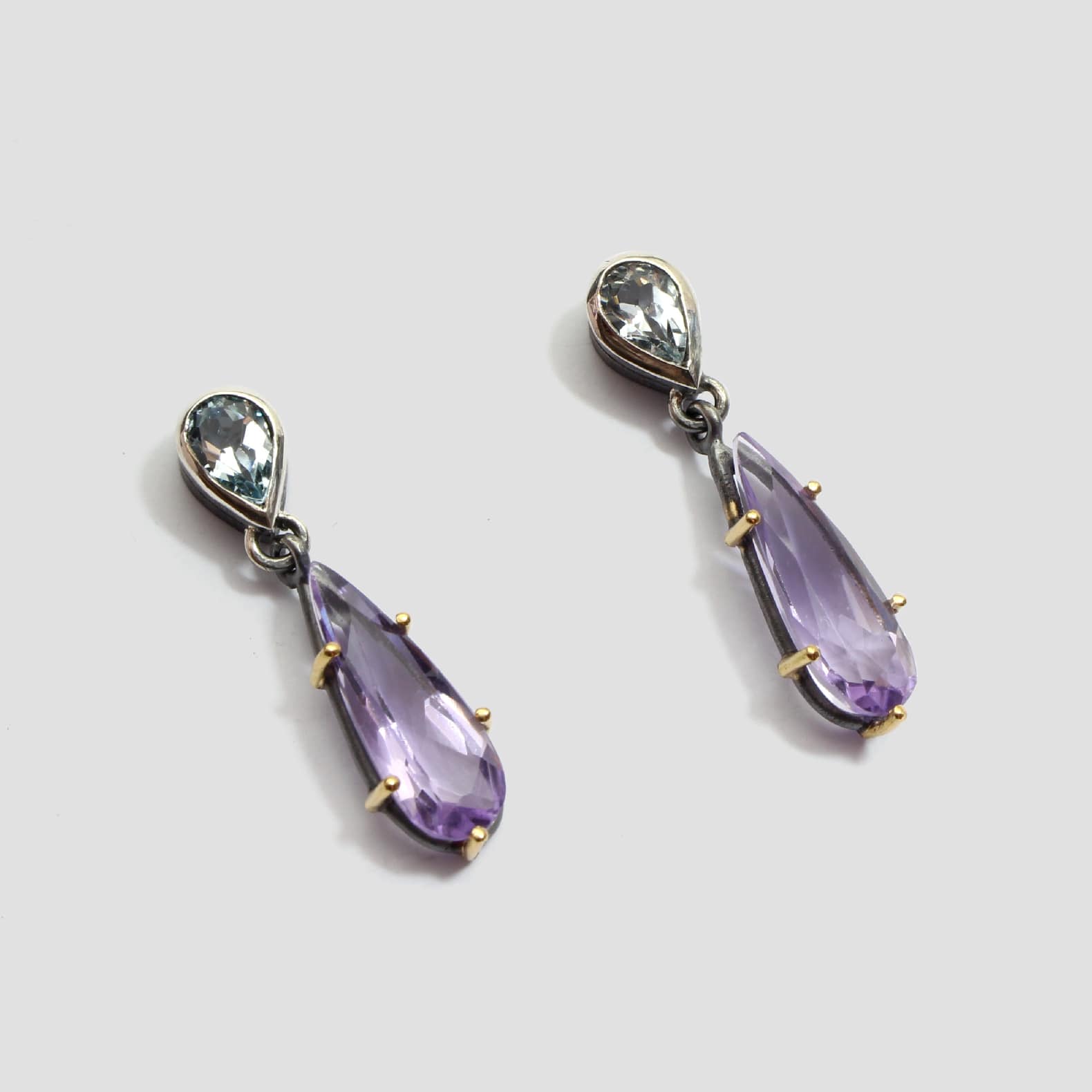 Arracades de plata, or groc de 18q, dos ametistes i dos topazis.