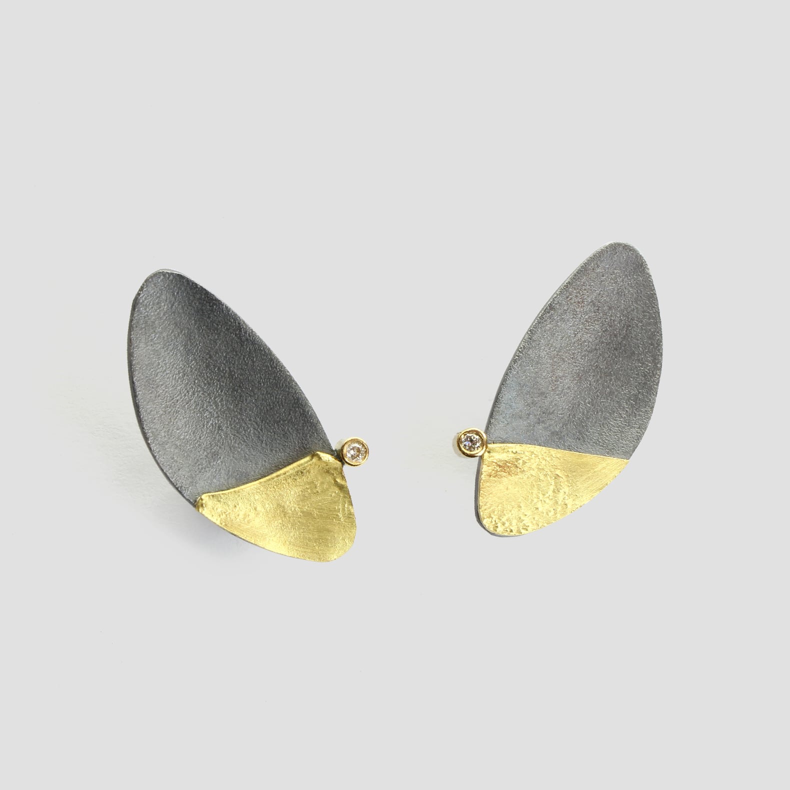 Arracades de plata, or groc de 18q i dos diamants naturals talla brillant.