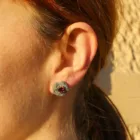 Arracades de plata texturitzada, or groc de 18q i dos rodolitos.