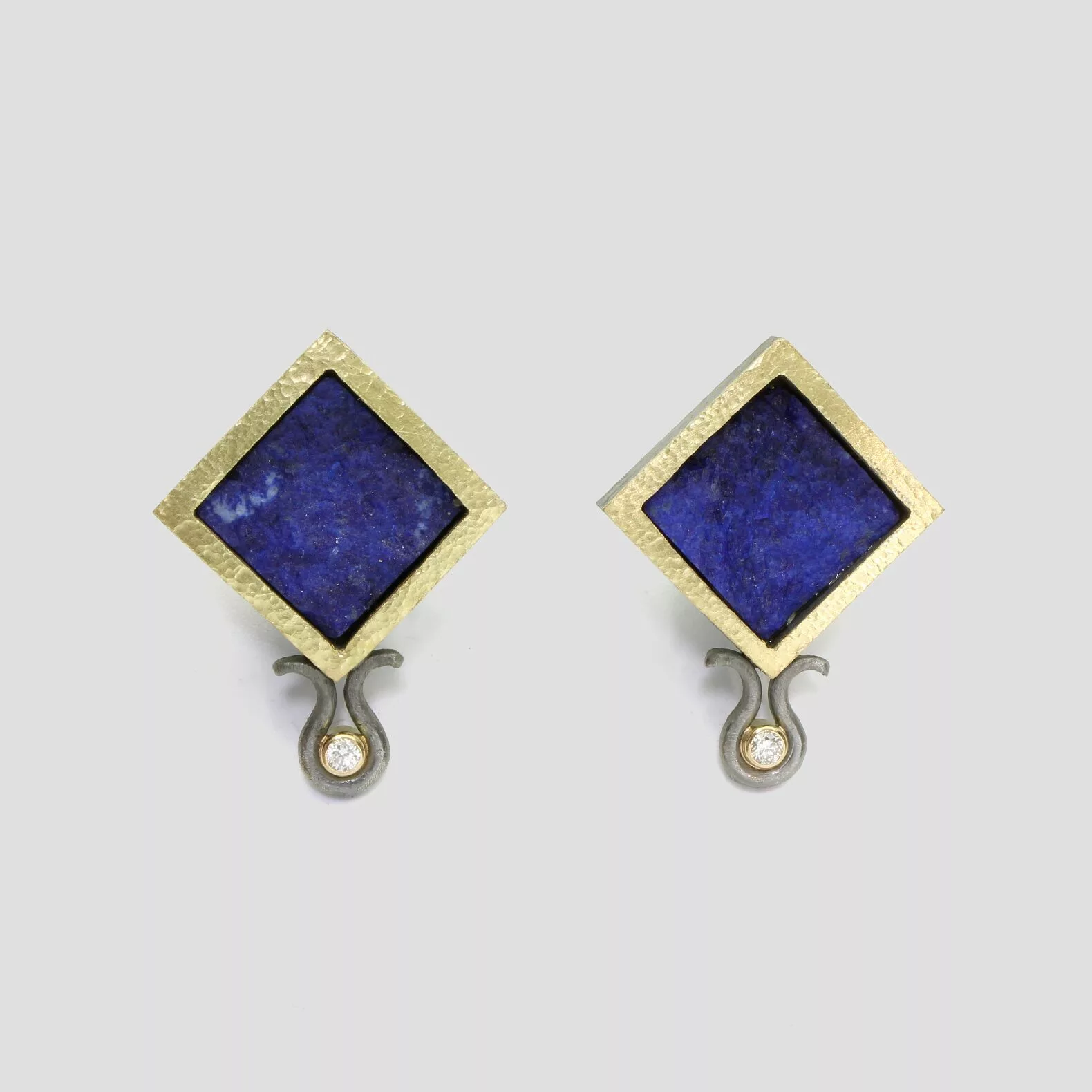 Dos magnífics lapislàtzulis en forma de rombe són els protagonistes d’aquestes arracades, emmarcades en plata, or de 18q i dos diamants naturals talla brillant, la singularitat de les peces úniques.
