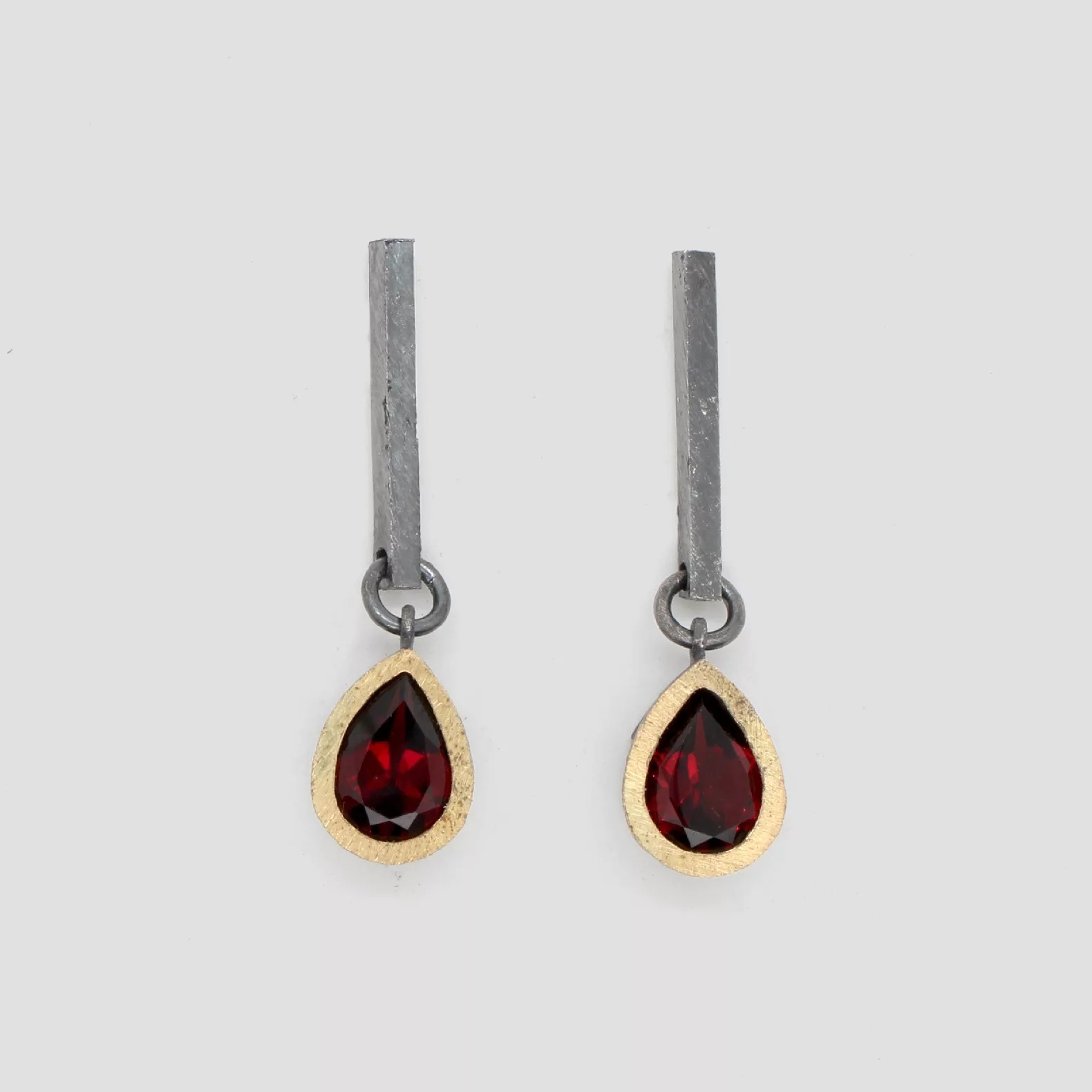 Arracades de plata, or groc de 18q i dos granats.