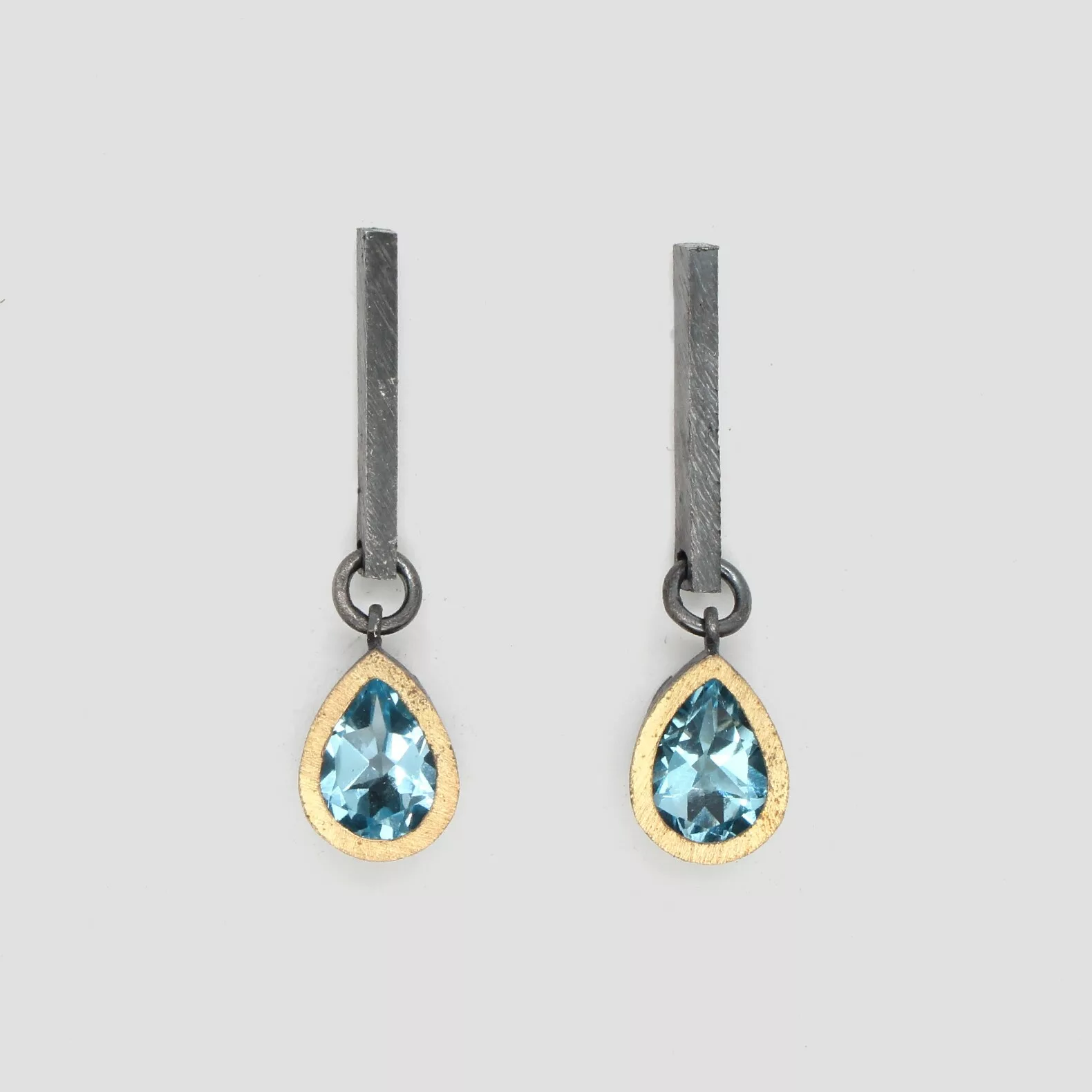 Arracades de plata, or groc de 18q i dos topazis blaus.