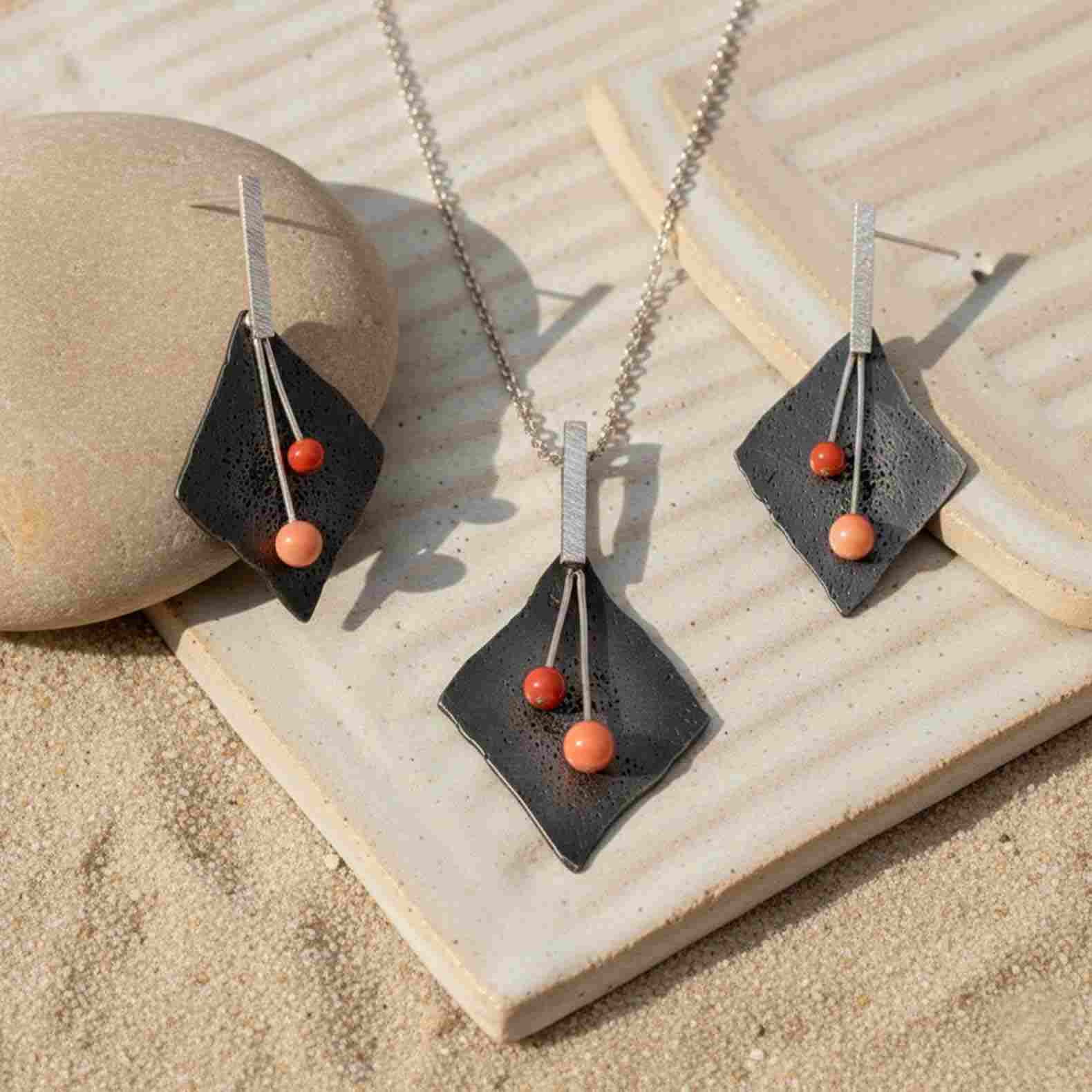 Penjoll de plata i corall.
