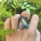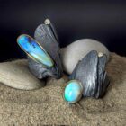 La natura de vegades ens sorprèn amb un magnífic òpal boulder; la plata, l’or groc de 18q i un diamant natural talla brillant rematen aquest anell únic.