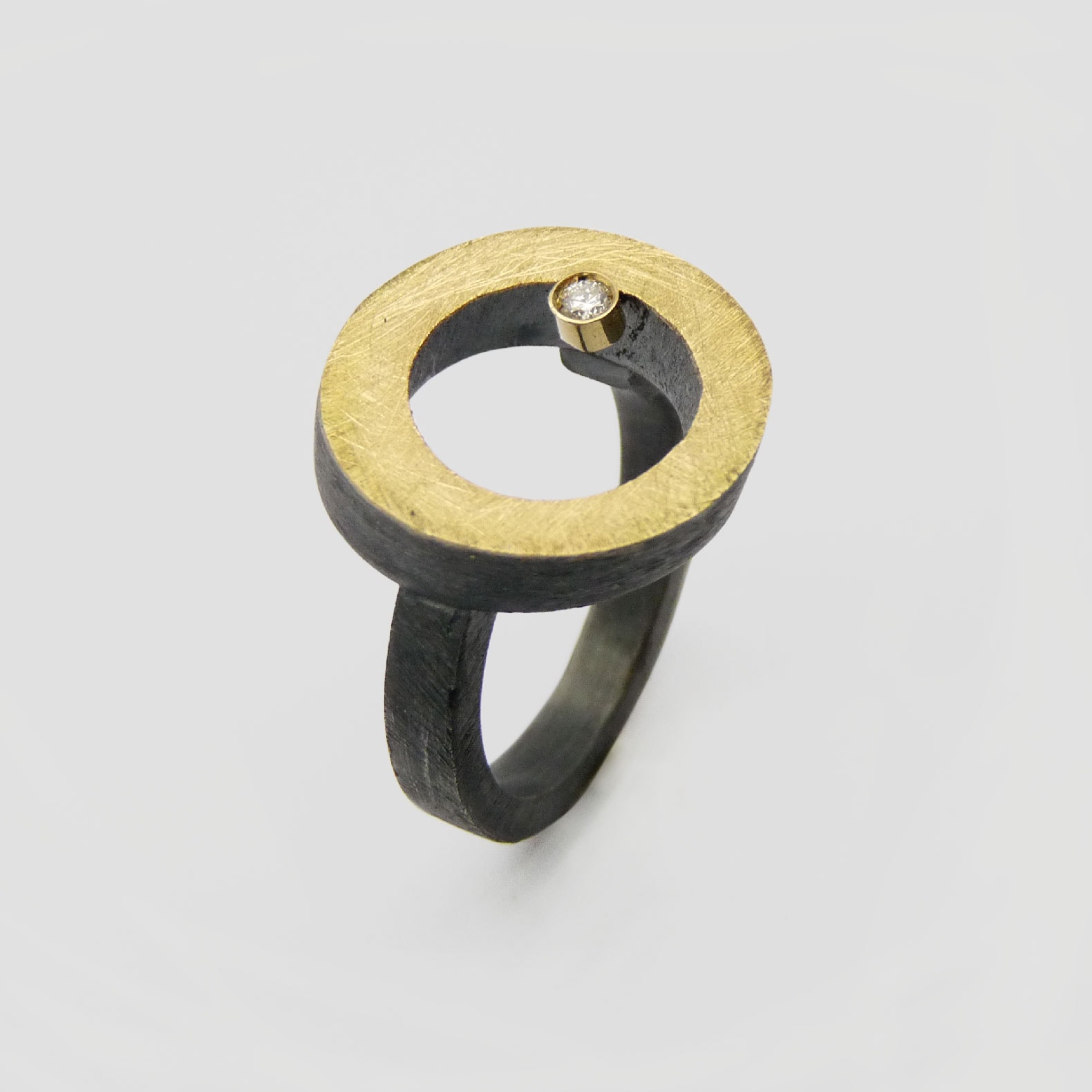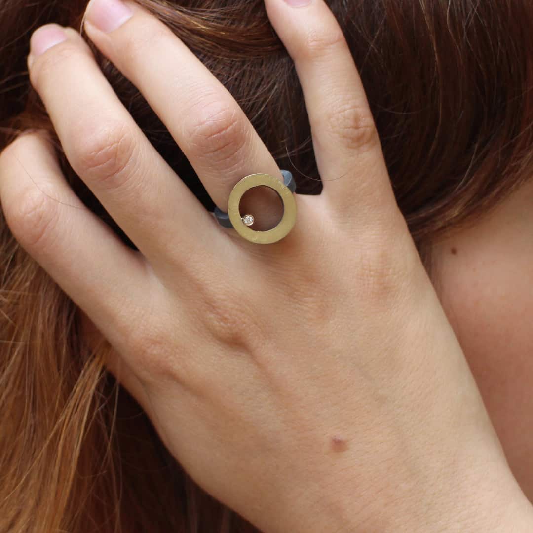 Anell de plata, or groc de 18q i un diamant natural talla brillant.