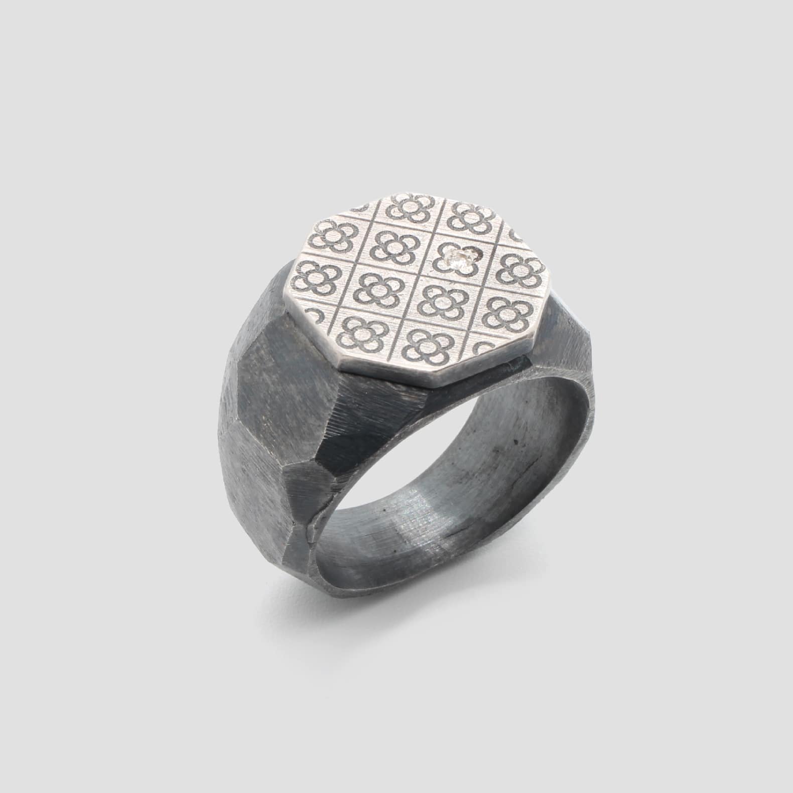 Anell tipo segell de plata i un diamant natural talla brillant.