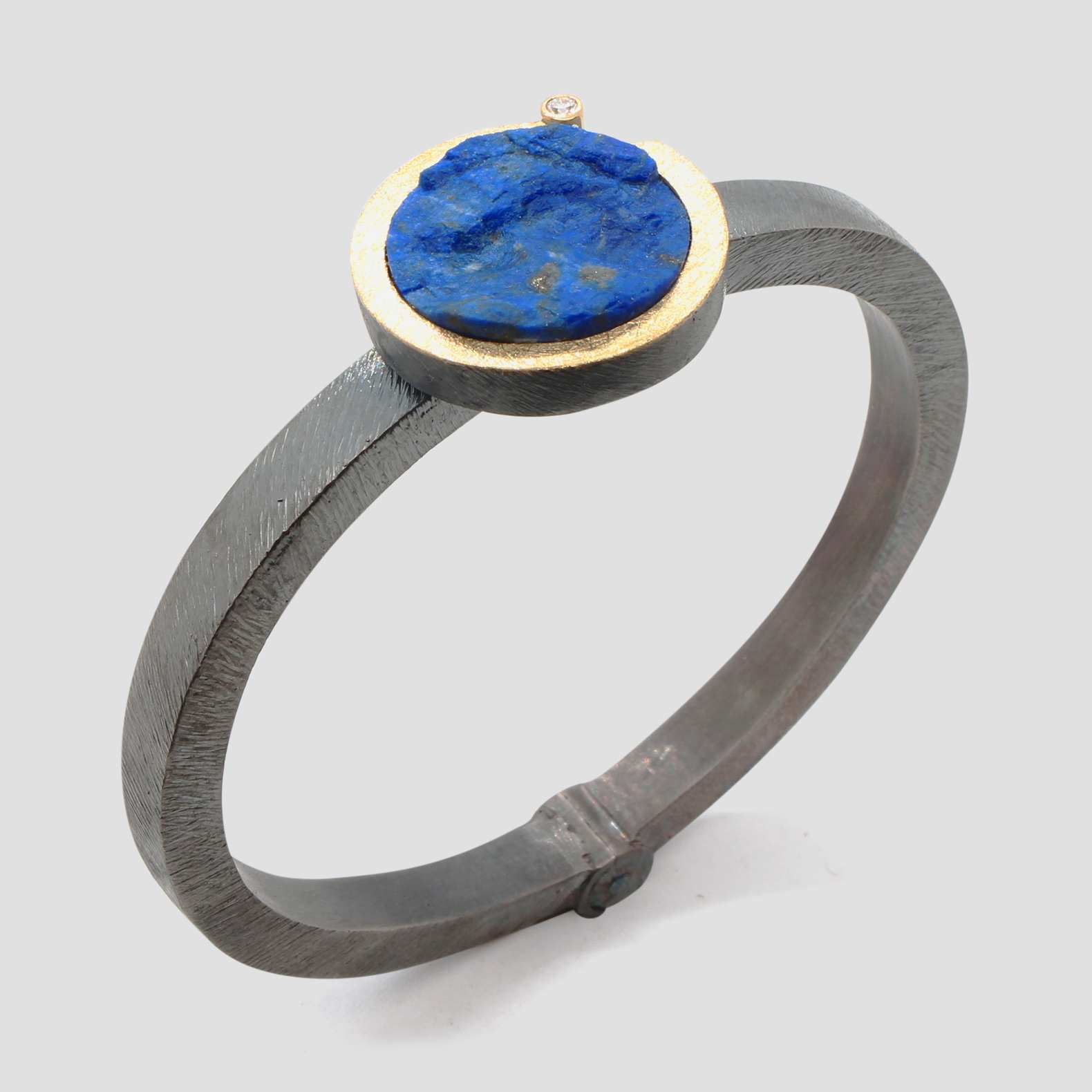 Polsera de plata, or groc de 18q, un diamant natural talla brillant i lapislàtzuli.