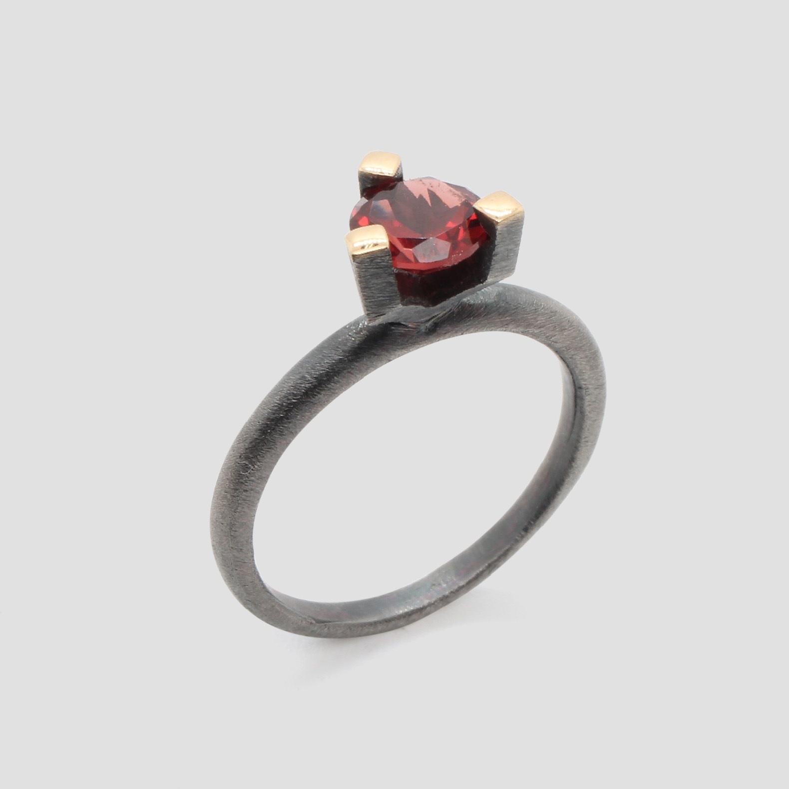 Anell de plata, or groc de 18q, un diamant natural talla brillant i un granat.