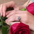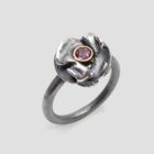 Anell de plata, or groc de 18q, un diamant natural talla brillant i un rodolito.