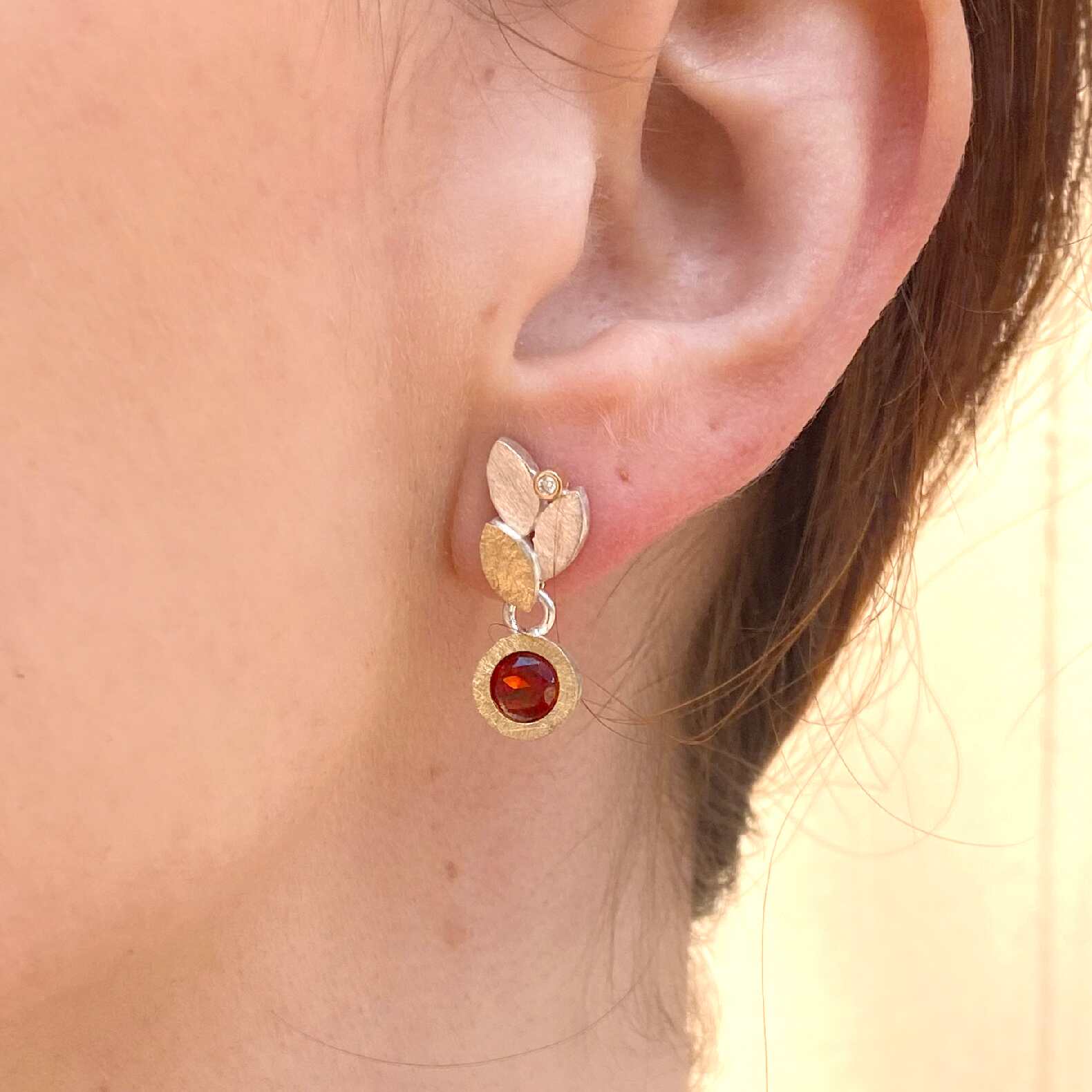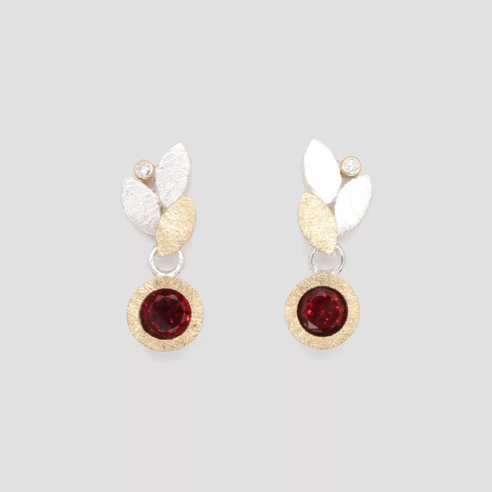 Arracades de plata, or groc de 18q, dos diamants naturals talla brillant i dos granats.