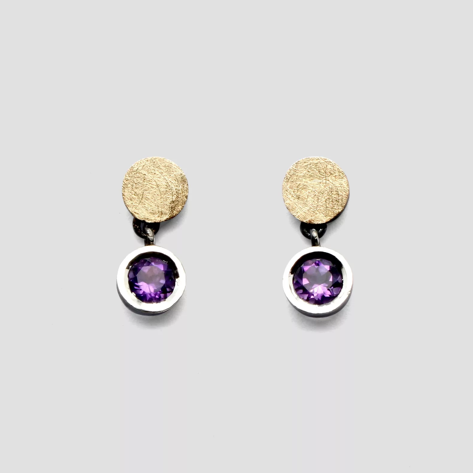 Arracades de plata, or groc de 18q i dues ametistes.