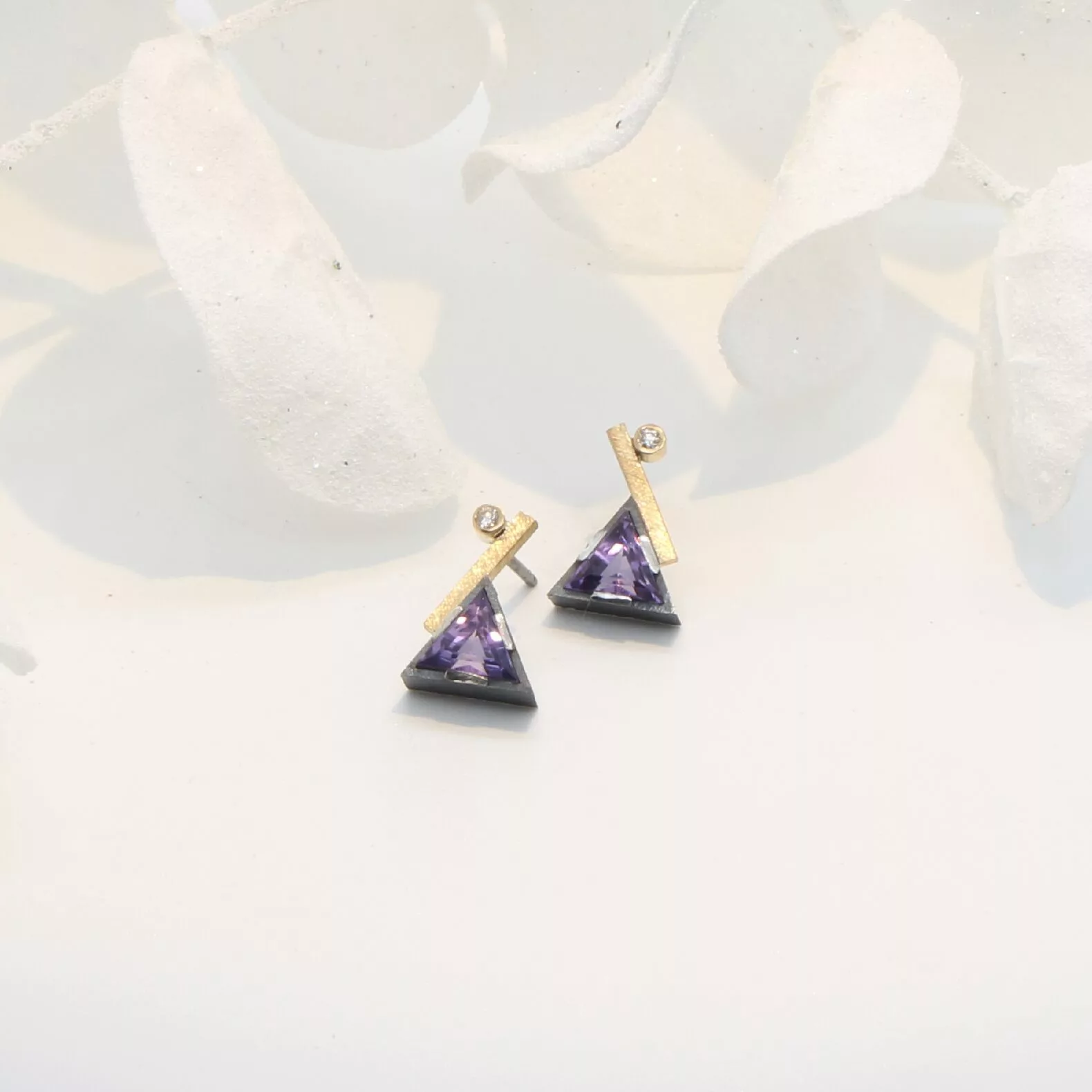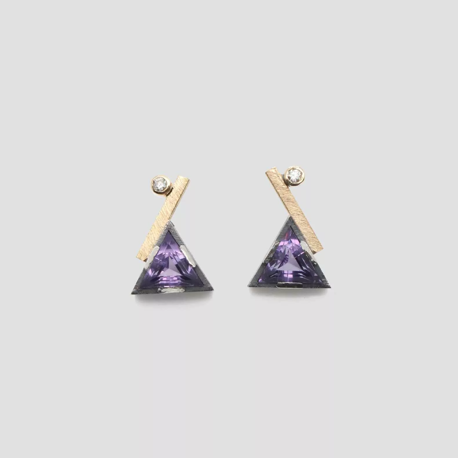 Arracades de plata, or groc de 18q, dos diamants naturals talla brillant i dues ametistes.
