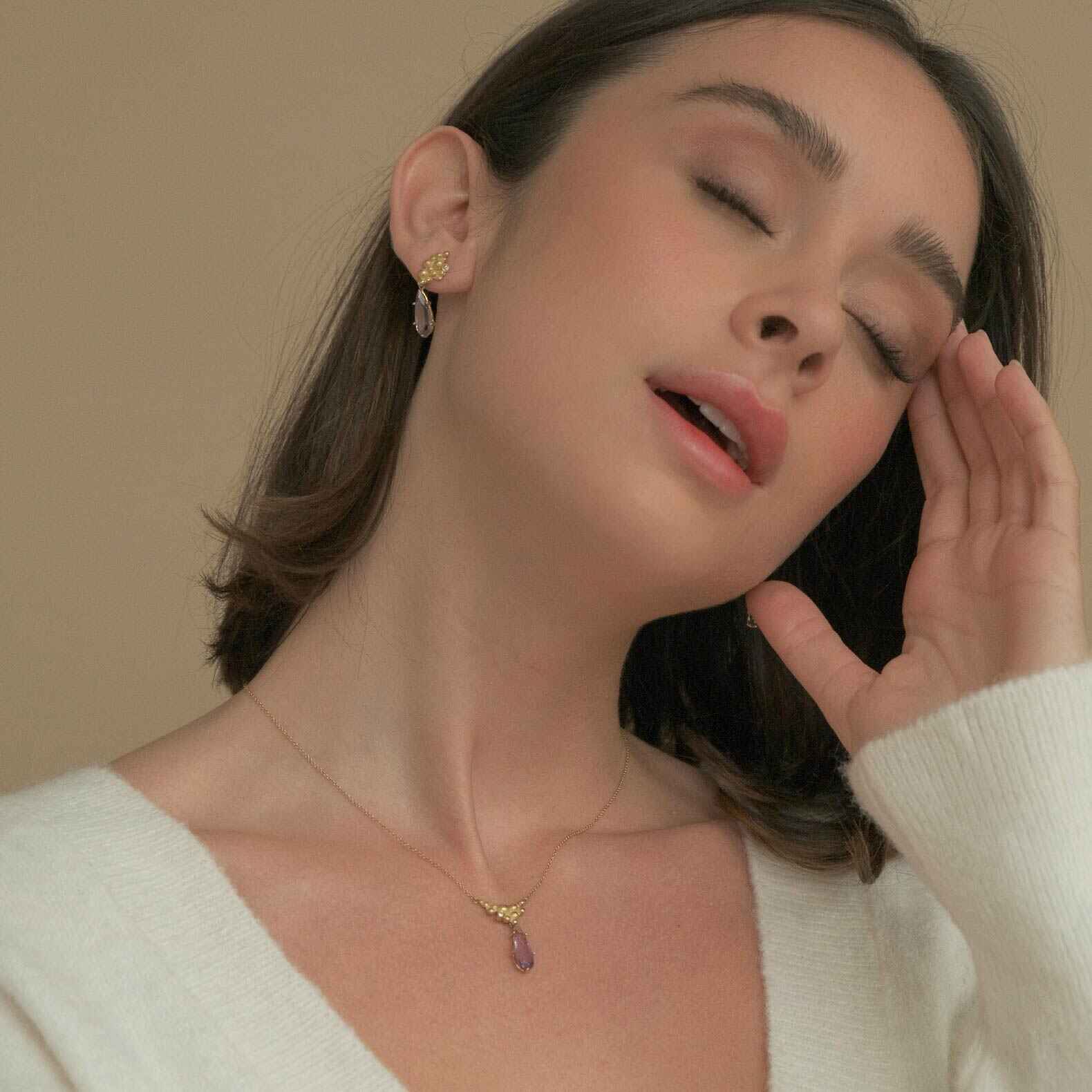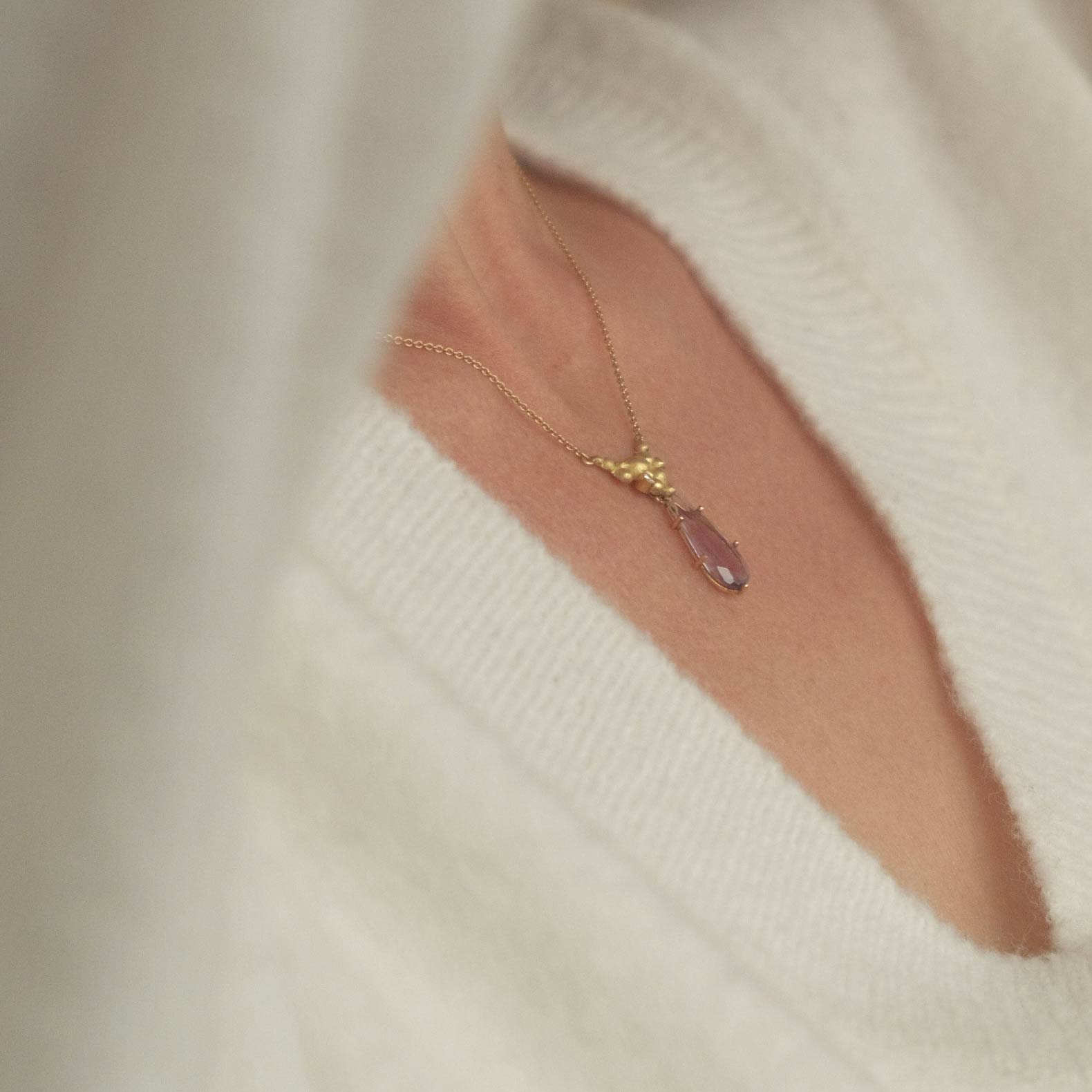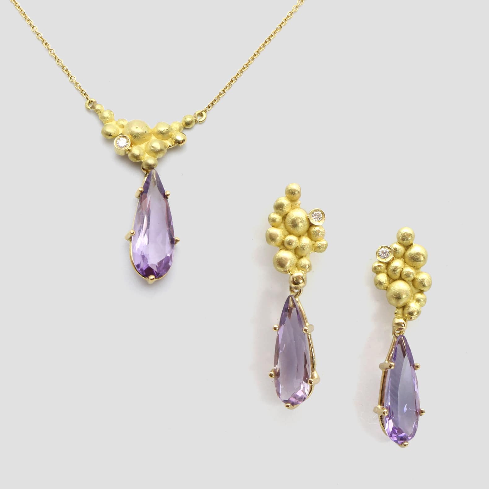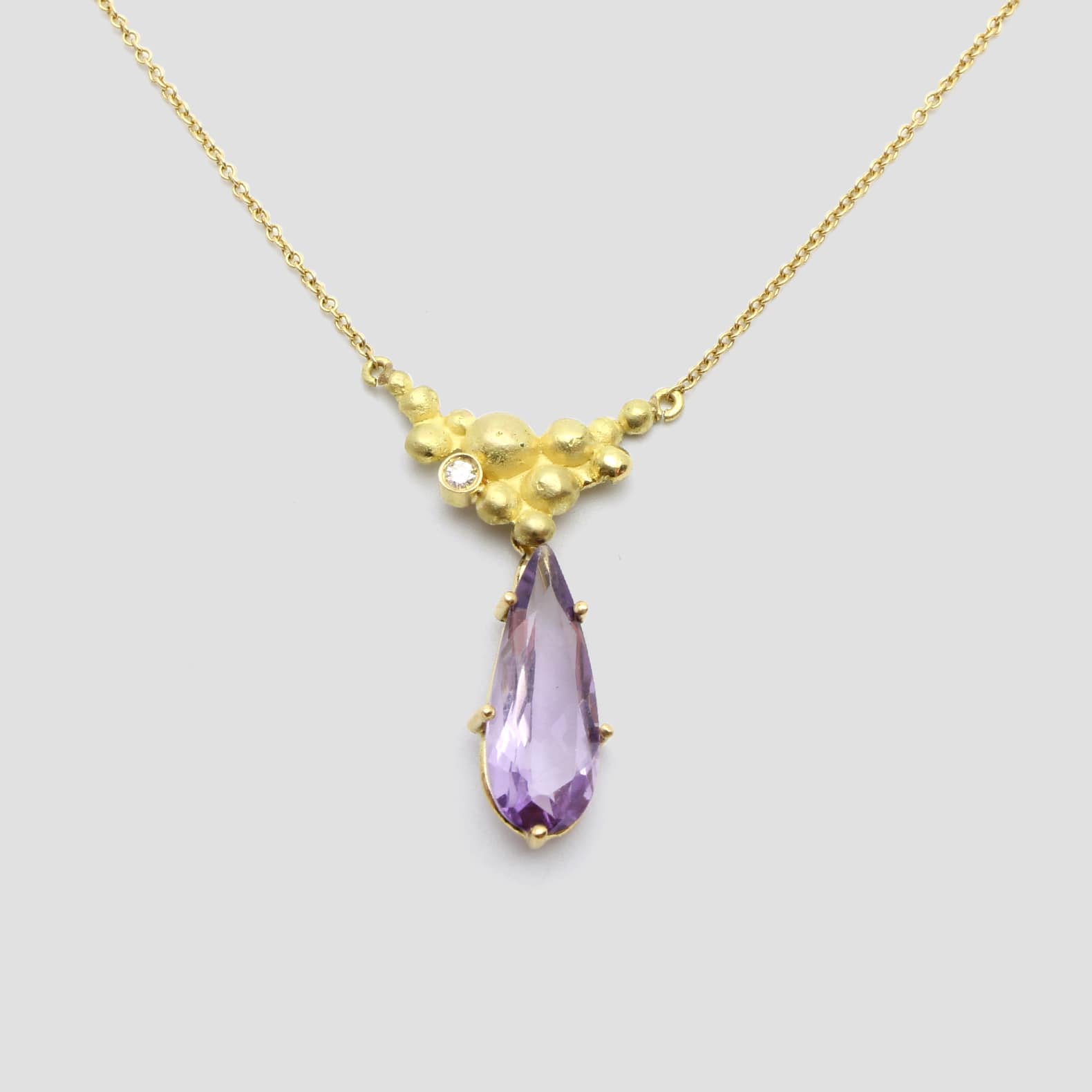 Collar d’or groc de 18q i un diamant natural talla brillant i una ametista.