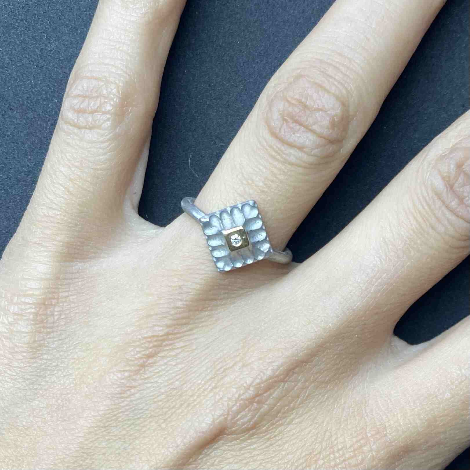 Anell de plata, or groc de 18q i un diamant natural talla brillant.