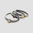 Anell de plata, or groc de 18q i un diamant natural talla brillant.