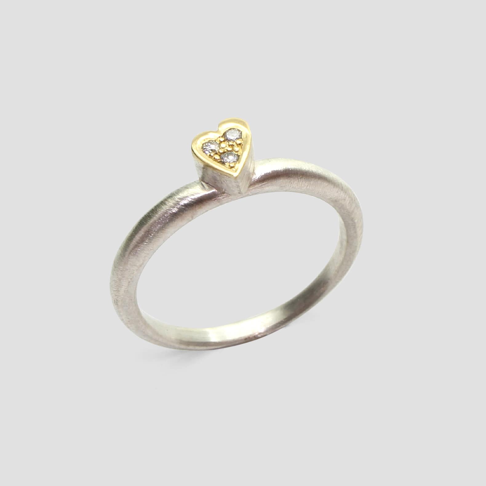 Anell de plata, or groc de 18q i tres diamants naturals talla brillant.