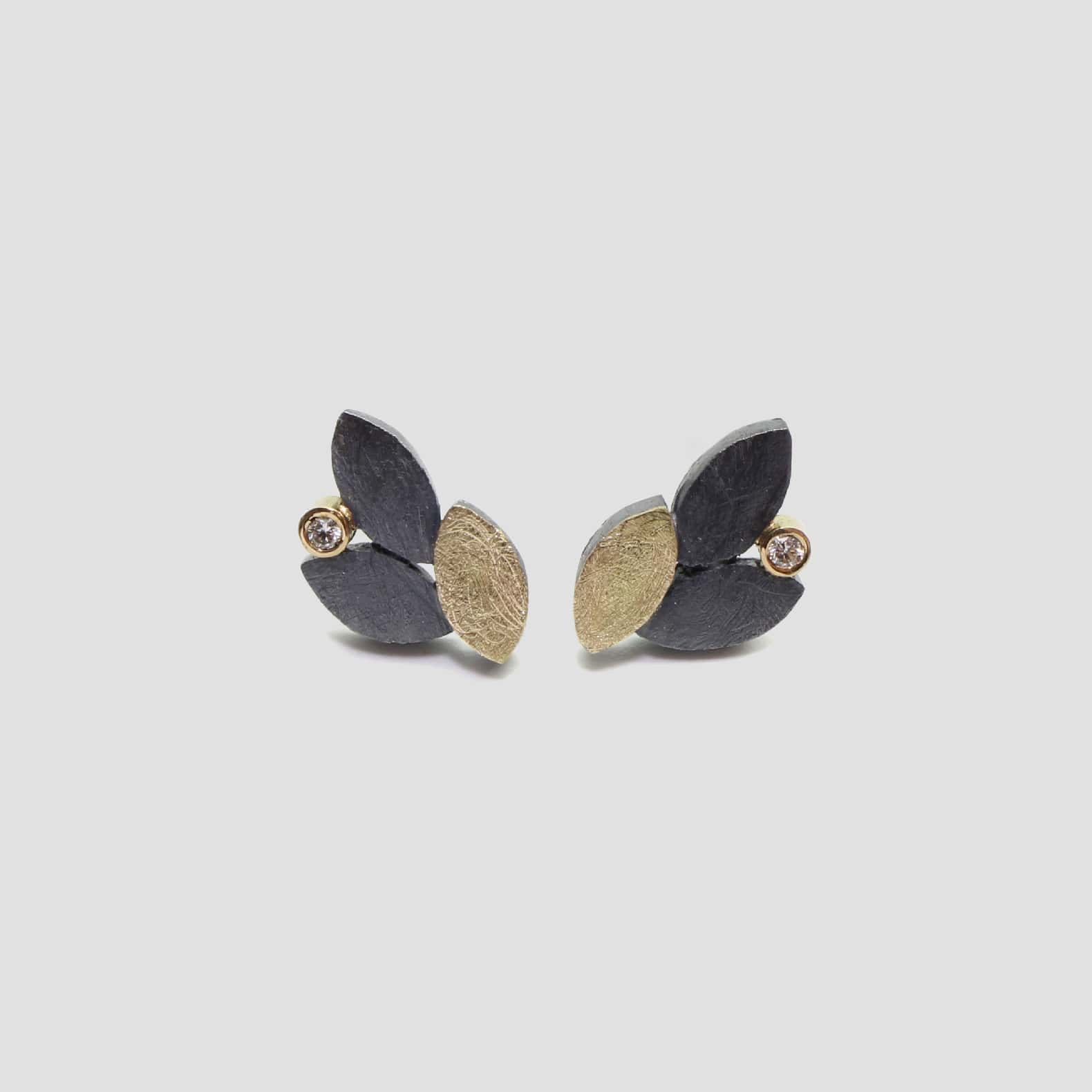 Arracades de plata, or groc de 18q i dos diamants naturals talla brillant.