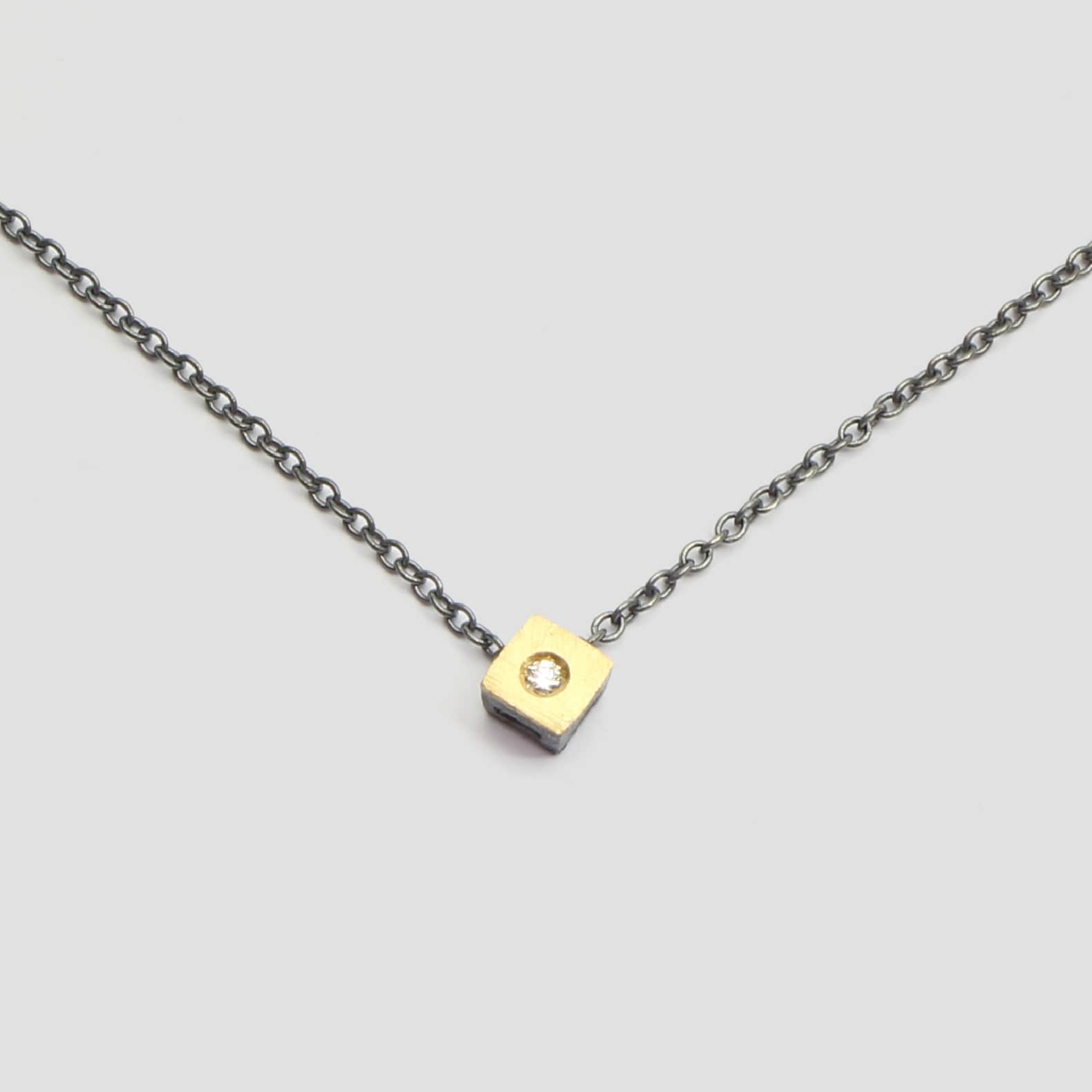Collar de plata, or groc de 18q i un diamant natural talla brillant.