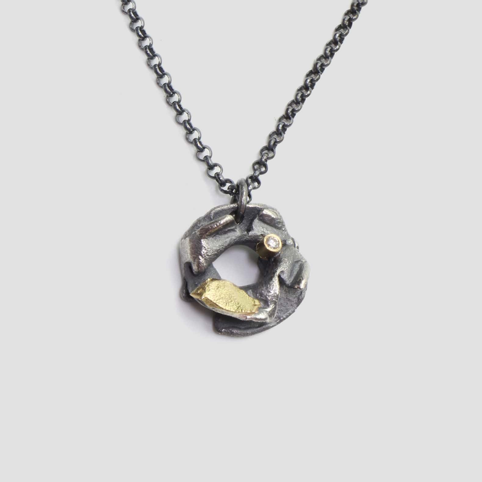 Collar de plata, or groc de 18q i un diamant natural talla brillant.