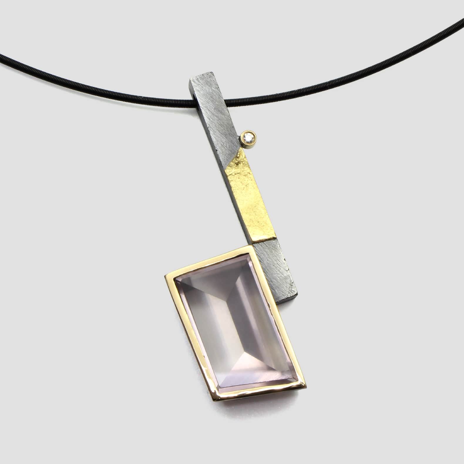 Magnífic penjoll amb una ametista rosa talla mirall i un diamant natural talla brillant acabat en plata i or groc de 18q.
