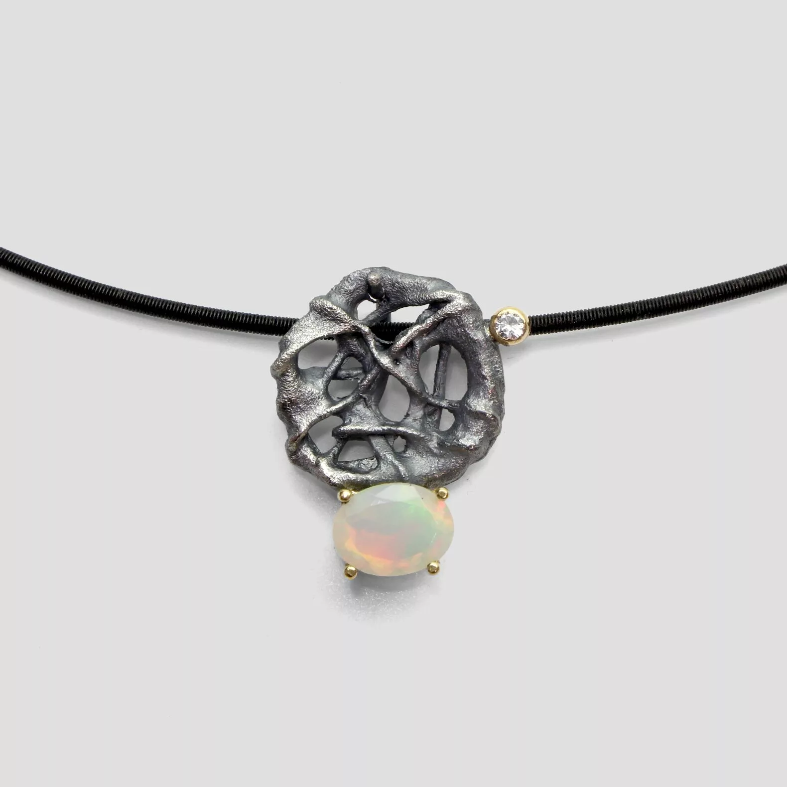 Magnífic penjoll amb un òpal etíop i un diamant natural talla brillant acabat en plata i or groc de 18q.