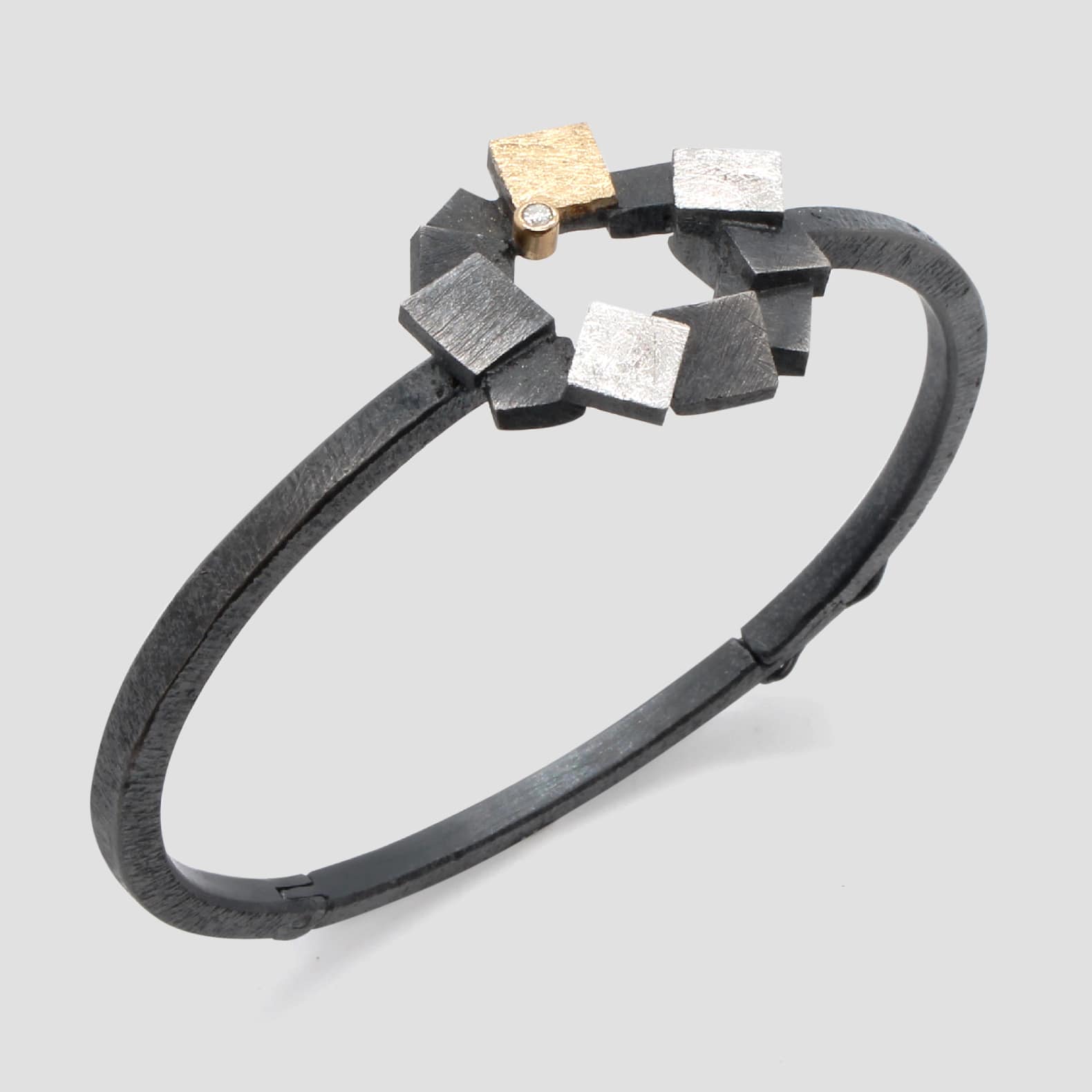 Polsera de plata, or groc de 18q i un diamant natural talla brillant.
